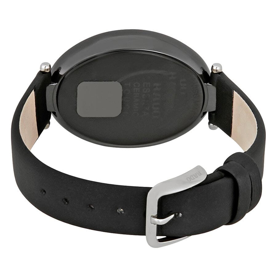 Женские керамические швейцарские часы с бриллиантами Rado Esenza R53093715, кварцевый механизм с высокой точностью. Сапфировое стеклоСапфировое стеклоПрочный и надёжный материал из кристалла сапфира синтетического происхождения, характеризующийся особой твёрдостью и устойчивостью к царапинам и повреждениям. устойчивое к появлению царапин, обладающее высокой прозрачностью. Класс водозащиты: 30 метров, позволит защитить корпус от случайных брызг или капель дождя. Корпус часов изготовлен из высокотехнологичной керамикиВысокотехнологичная керамикаИнновационный запатентованный Rado материал с гладкой или матовой поверхностью. Керамика за счёт кристаллической структуры обладает повышенной устойчивостью от возникновения царапин. Материал способен принимать температуру тела человека, обеспечивая невероятный комфорт при ношении.. Кожаный ремешок на стандартной застёжке.