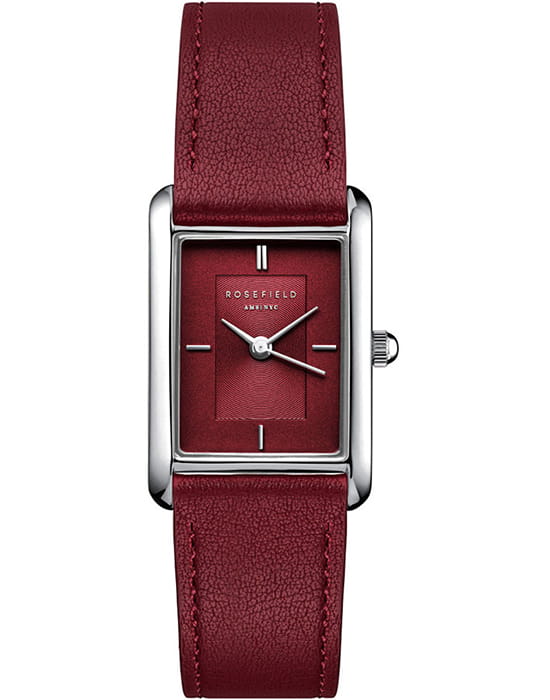 Часы Rosefield Heirloom Burgundy (модель HBBLS-H08) — это элегантный женский аксессуар, сочетающий классический дизайн и современные тенденции. Корпус прямоугольной формы размером 23,5 x 30,6 мм выполнен из латуни, что придаёт часам утончённый и современный вид. Бордовый циферблат с серебристыми часовыми метками и стрелками обеспечивает отличную читаемость. Циферблат защищён минеральным стекломМинеральное стеклоМинеральное стекло представляет собой искусственно выращенный минерал кварца. Такое стекло отличается особой устойчивостью к повреждениям и царапинам. Уступает по некоторым качествам сапфировому стеклу., устойчивым к царапинам.
