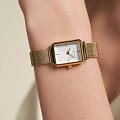 Женские кварцевые часы. Центральные часовая, минутная и секундная стрелки. Белый циферблат. Восьмиугольный корпус выполнен из полированной нержавеющей стали с IP-покрытиемIP-покрытиеМетод ионного напыления. Демонстрирует повышенную устойчивость к истиранию, окислению и химическим веществам. Под воздействием высокого давления и температуры около 1500°C молекулы металла надёжно соединяются с частицами корпуса часов. цвета желтого золота. Размер корпуса составляет 21,5 х 27,5 мм. Стальной браслет c IP-покрытиемIP-покрытиеМетод ионного напыления. Демонстрирует повышенную устойчивость к истиранию, окислению и химическим веществам. Под воздействием высокого давления и температуры около 1500°C молекулы металла надёжно соединяются с частицами корпуса часов. с ювелирной застежкой. Прочное минеральное стеклоМинеральное стеклоМинеральное стекло представляет собой искусственно выращенный минерал кварца. Такое стекло отличается особой устойчивостью к повреждениям и царапинам. Уступает по некоторым качествам сапфировому стеклу. устойчивое к мелким механическим повреждениям. Водостойкость WR 30 (брызги). В комплекте аксессуар - женский браслет.