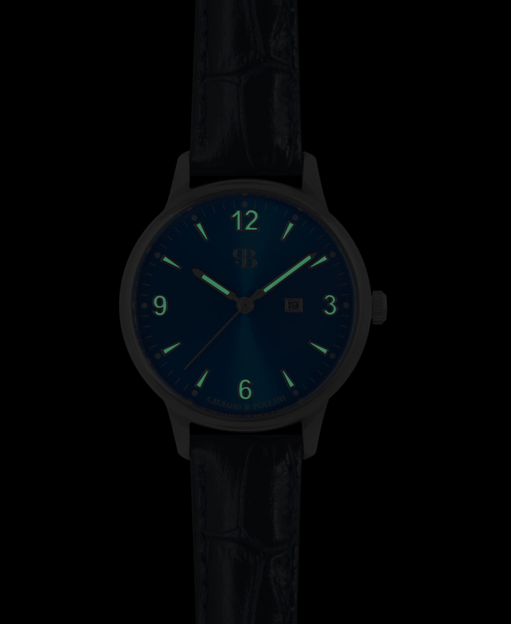 Класс водозащиты часов составляет 30 метров, что позволяет защитить корпус от случайных брызг и капель дождя.Кожаный ремешок на стандартной застежке. Эти часы идеально подойдут для повседневного использования, сочетая в себе стиль, надежность и функциональность. Окошко даты находится в положении 3 часа. Стрелки и метки с люминесцентным покрытиемЛюминесцентное покрытиеПозволяет считывать показания времени в темноте. Производители наносят на стрелки, часовые индексы, безель или поверхность циферблата светонакопительный состав, дающий холодное свечение..
