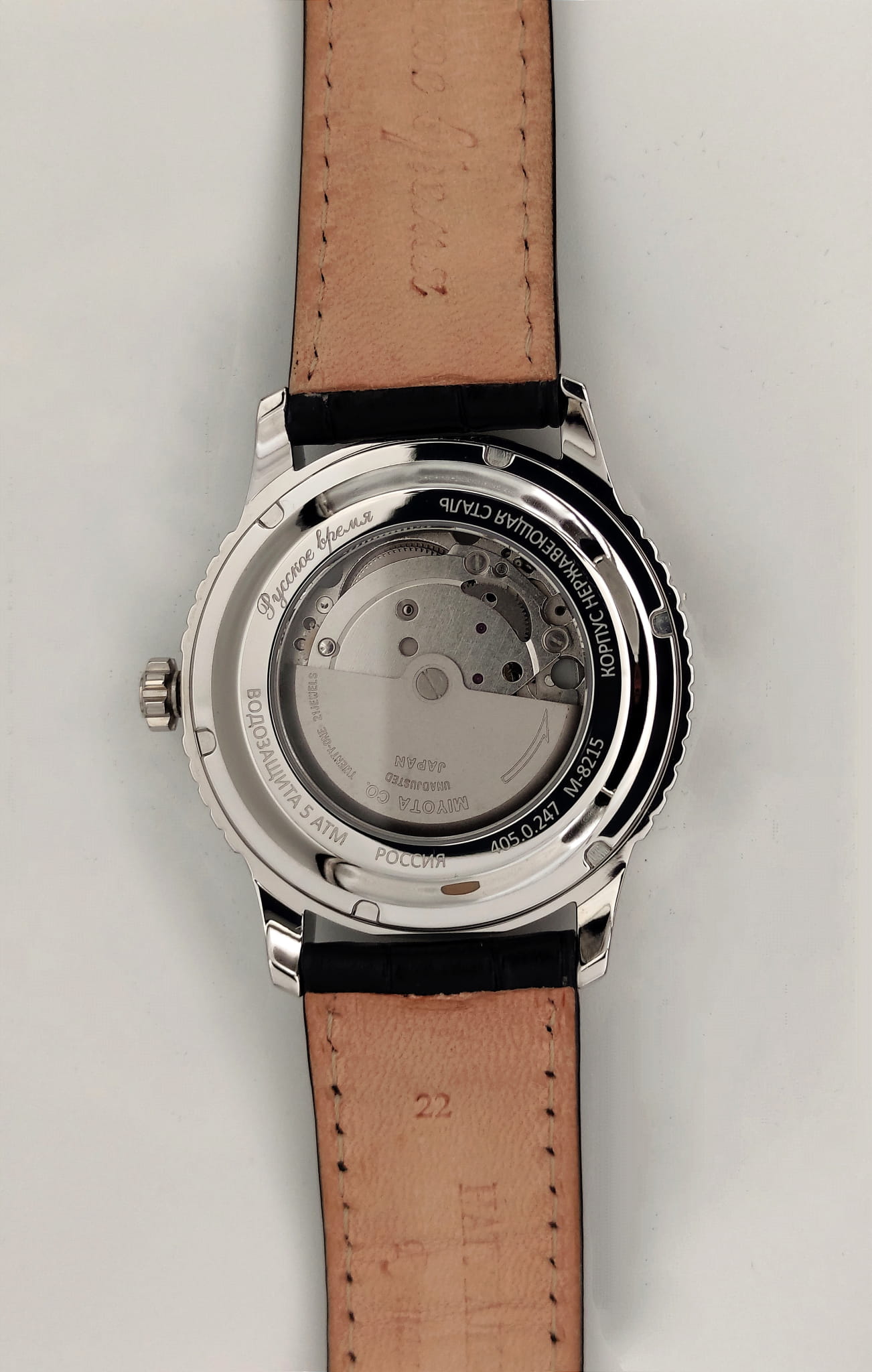Точность хода обеспечивается надежным механическим механизмом с автоподзаводом Miyota 8215 (Япония). Этот высокоточный механизм гарантирует, что ваши часы всегда будут показывать точное время без необходимости регулярной подзарядки батареи. Заводная система работает от движения руки, что делает эти часы особенно удобными и практичными.