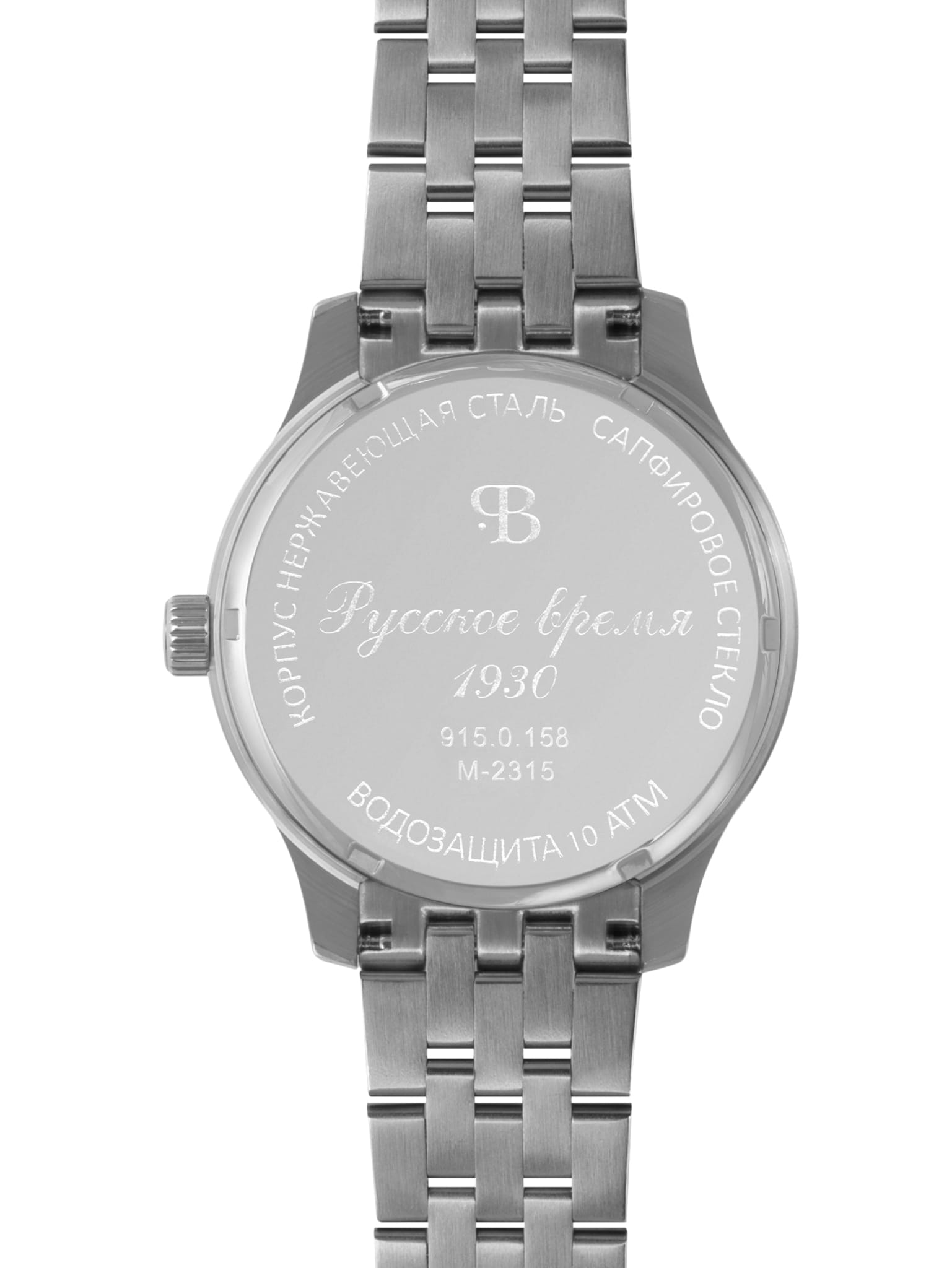 Российские часы Русское время 9150158бр оснащены кварцевый механизм, что обеспечивает исключительную надежность и точность хода. Корпус часов выполнен из стали, что придает ему долговечность и устойчивость к внешним воздействиям.Сапфировое стеклоСапфировое стеклоПрочный и надёжный материал из кристалла сапфира синтетического происхождения, характеризующийся особой твёрдостью и устойчивостью к царапинам и повреждениям. устойчиво к мелким механическим повреждениям, что гарантирует долговечность и сохранение первоначального вида.