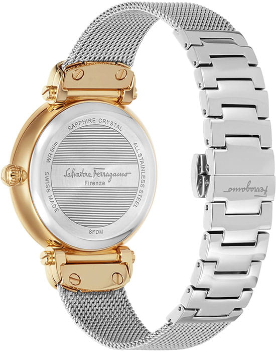 Женские швейцарские часы с сапфировым стеклом Salvatore Ferragamo SFDM00618, кварцевый механизм с высокой точностью. Сапфировое стекло устойчивое к появлению царапин, обладающее высокой прозрачностью. Класс водозащиты: 50 метров, позволит защитить корпус от случайных брызг или капель дождя. Корпус часов изготовлен из стали, цвета.