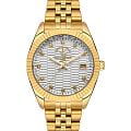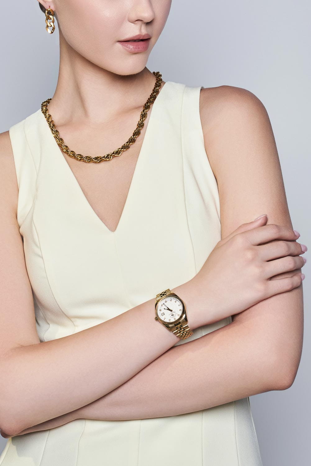 Женские кварцевые часы Santa Barbara Polo & Racquet Club — это эффектный и притягательный аксессуар. Корпус диаметром 34 мм и высотой 40,8 мм выполнен из латуни с IP-покрытиемIP-покрытиеМетод ионного напыления. Демонстрирует повышенную устойчивость к истиранию, окислению и химическим веществам. Под воздействием высокого давления и температуры около 1500°C молекулы металла надёжно соединяются с частицами корпуса часов.. БезельБезельВнешний ободок, закрепляющий стекло. В спортивных часах так называется поворотное кольцо с делениями на циферблате, выполняет роль таймера – замеряет отрезки времени на шкале. Неподвижный безель – элемент декора. Однонаправленно вращающийся безель на дайверских часах позволяет фиксировать моменты погружения и выныривания на поверхность. рифлёный, придаёт дизайну выразительность. Циферблат серебристого цвета с текстурной поверхностью украшен накладными метками в виде точек, инкрустированных кристаллами. Окошко даты расположено в положении 3 часов. Стрелки с люминесцентным покрытиемЛюминесцентное покрытиеПозволяет считывать показания времени в темноте. Производители наносят на стрелки, часовые индексы, безель или поверхность циферблата светонакопительный состав, дающий холодное свечение., обеспечивающим хорошую читаемость в темноте. Циферблат защищён минеральным стекломМинеральное стеклоМинеральное стекло представляет собой искусственно выращенный минерал кварца. Такое стекло отличается особой устойчивостью к повреждениям и царапинам. Уступает по некоторым качествам сапфировому стеклу.. Механизм — кварцевый калибр Miyota 2115. Часы оснащены стальным браслетом с IP-покрытиемIP-покрытиеМетод ионного напыления. Демонстрирует повышенную устойчивость к истиранию, окислению и химическим веществам. Под воздействием высокого давления и температуры около 1500°C молекулы металла надёжно соединяются с частицами корпуса часов. и раскладной застёжкойРаскладная застёжкаТакой тип застёжки используется только на браслетах из металла. Она никогда не раскрывается полностью, происходит разделение на 2 и более частей. Раскладывающая застёжка снизит вероятность потери часов к минимуму.. Водонепроницаемость 50 м позволяет использовать часы в повседневных условиях. Идеальный выбор для тех, кто ценит блеск, стиль и качество.