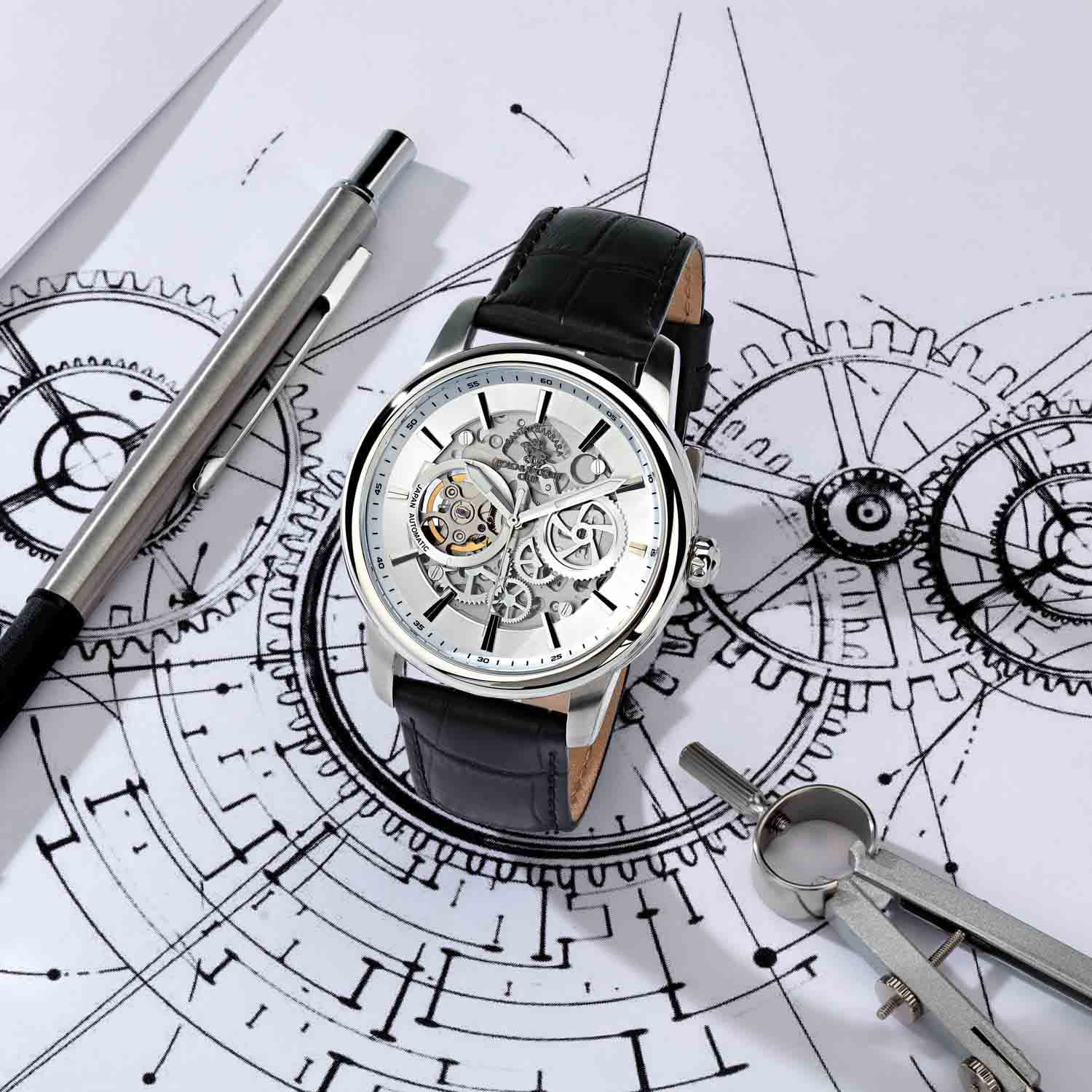 Мужские механические часы с автоподзаводом Santa Barbara Polo & Racquet Club — это демонстрация инженерного искусства и изящества. Корпус диаметром 43,8 мм и высотой 52 мм выполнен из стали. Циферблат серебристого цвета частично скелетонизирован, что позволяет наблюдать за работой механизма. Двухуровневый циферблат оформлен по технологии Sunray («солнечные лучи»), дополнен накладными метками в виде штрихов и фирменным логотипом. Стрелки с люминесцентным покрытиемЛюминесцентное покрытиеПозволяет считывать показания времени в темноте. Производители наносят на стрелки, часовые индексы, безель или поверхность циферблата светонакопительный состав, дающий холодное свечение., обеспечивающим хорошую читаемость в темноте. Циферблат защищён минеральным стекломМинеральное стеклоМинеральное стекло представляет собой искусственно выращенный минерал кварца. Такое стекло отличается особой устойчивостью к повреждениям и царапинам. Уступает по некоторым качествам сапфировому стеклу.. Прозрачная задняя крышка открывает вид на декорированный механизм. Часы оснащены кожаным ремешком с стандартной застёжкой. Водонепроницаемость 50 м позволяет использовать часы в повседневных условиях. Идеальный выбор для тех, кто ценит технологичность, стиль и качество.