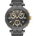 Циферблат подчёркивает индивидуальность модели и гармонично сочетается с серебристыми метками и стрелками. Функционал включает хронографХронографФункция позволяет измерять отрезки времени с особой точностью: часы, минуты, секунды. Верным признаком хронографа является наличие на циферблате 3 дополнительных окошек-счётчиков. с тремя субциферблатами, секундомерСекундомерСекундоме́р — прибор, способный измерять интервалы времени с точностью до долей секунды. и окошко даты, расположенное в области «4 часов». На фиксированном безелеБезельВнешний ободок, закрепляющий стекло. В спортивных часах так называется поворотное кольцо с делениями на циферблате, выполняет роль таймера – замеряет отрезки времени на шкале. Неподвижный безель – элемент декора. Однонаправленно вращающийся безель на дайверских часах позволяет фиксировать моменты погружения и выныривания на поверхность. размещена тахиметрическая шкала ТахиметрТахиметрРазмеченная шкала, располагается на ободке или безеле часов. Тахиметр позволяет рассчитать скорость на определённом участке пути, расстояние измеряется в километрах или милях., позволяющая измерять скорость.