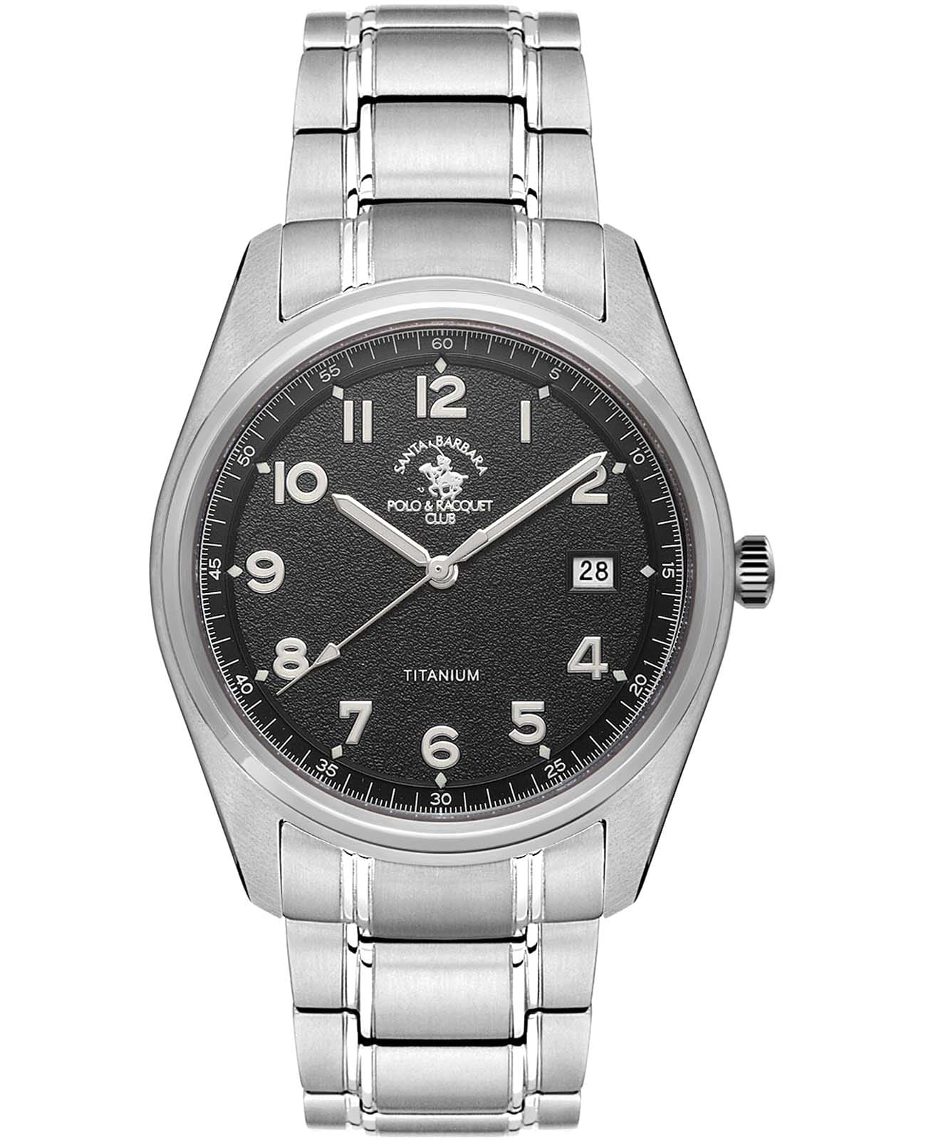 Мужские кварцевые Santa Barbara Polo & Racquet Club SB.4.1010-1 — воплощение элегантности и технического совершенства. Корпус из титана серебристого цвета, диаметром 40 мм, что делает их устойчивыми к внешним воздействиям и придает благородный вид. Стрелки и метки с люминесцентным покрытиемЛюминесцентное покрытиеПозволяет считывать показания времени в темноте. Производители наносят на стрелки, часовые индексы, безель или поверхность циферблата светонакопительный состав, дающий холодное свечение., обеспечивающим хорошую читаемость в темноте. Циферблат защищён минеральным стекломМинеральное стеклоМинеральное стекло представляет собой искусственно выращенный минерал кварца. Такое стекло отличается особой устойчивостью к повреждениям и царапинам. Уступает по некоторым качествам сапфировому стеклу. устойчивое к царапинам и механическим повреждениям. Окошко даты находится в положении 3 часа. Браслет из титана на раскладной застёжкеРаскладная застёжкаТакой тип застёжки используется только на браслетах из металла. Она никогда не раскрывается полностью, происходит разделение на 2 и более частей. Раскладывающая застёжка снизит вероятность потери часов к минимуму. обеспечивает комфортное и безопасное ношение. Водонепроницаемость 50 метров позволит защитить корпус от случайных брызг или капель дождя. Идеальный выбор для тех, кто ценит элегантный дизайн и качество.