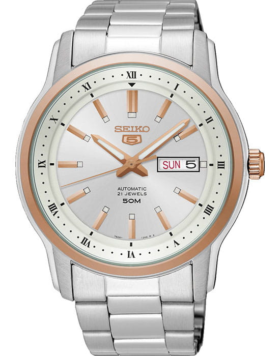 Японские мужские механические часы Seiko SNKP12K1S из коллекции 5 Regular – великолепная классика в серебристом исполнении.