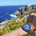 Аксессуар имеет дайвеский характер. Он реализован в массивном корпусе, выдерживающим давление воды, вращающемся безеле, крупной индикацией времени. Наручные часы с возможностью автоматического и ручного завода оснащены пружинным японским калибром 4R35 с 23 камнями, резерв хода сохраняется на 41 час. Модель защищена по всем параметрам: прочное минеральное стекло Hardlex, закручивающаяся задняя крышка, завинчивающаяся заводная головка с защитой. На стрелки и метки нанесено люминесцентное покрытие LumiBriteЛюминесцентное покрытиеПозволяет считывать показания времени в темноте. Производители наносят на стрелки, часовые индексы, безель или поверхность циферблата светонакопительный состав, дающий холодное свечение.. Надёжный корпус из антикоррозионной стали 316L дополнен цветным PVD-финишемPVDУльтратонкое покрытие наносится в технике вакуумного напыления, сочетает в себе нитрид титана особой прочности со слоем золота или оксида хрома. Несёт в себе декоративную или защитную функцию.. Повышенная водозащита WR 200 позволяет нырять и плавать в часах. Практичной является функция отображения даты и дня недели. Диаметр корпуса: 43,5 мм.