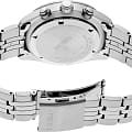 Мужские японские часы Seiko SSB427P1 c хронографомХронографФункция позволяет измерять отрезки времени с особой точностью: часы, минуты, секунды. Верным признаком хронографа является наличие на циферблате 3 дополнительных окошек-счётчиков., кварцевый механизм с высокой точностью. Минеральное стеклоМинеральное стеклоМинеральное стекло представляет собой искусственно выращенный минерал кварца. Такое стекло отличается особой устойчивостью к повреждениям и царапинам. Уступает по некоторым качествам сапфировому стеклу., устойчивое к появлению царапин, обладающее высокой прозрачностью. Класс водозащиты: 100 метров, позволит плавать, нырять и заниматься другими водными видами спорта. Корпус и браслет часов изготовлен из стали. Неподвижный безельБезельВнешний ободок, закрепляющий стекло. В спортивных часах так называется поворотное кольцо с делениями на циферблате, выполняет роль таймера – замеряет отрезки времени на шкале. Неподвижный безель – элемент декора. Однонаправленно вращающийся безель на дайверских часах позволяет фиксировать моменты погружения и выныривания на поверхность. со шкалой тахиметраТахиметрРазмеченная шкала, располагается на ободке или безеле часов. Тахиметр позволяет рассчитать скорость на определённом участке пути, расстояние измеряется в километрах или милях.. Стрелки и метки с люминесцентным покрытиемЛюминесцентное покрытиеПозволяет считывать показания времени в темноте. Производители наносят на стрелки, часовые индексы, безель или поверхность циферблата светонакопительный состав, дающий холодное свечение. LumiBrite. Браслет на раскладной застёжкеРаскладная застёжкаТакой тип застёжки используется только на браслетах из металла. Она никогда не раскрывается полностью, происходит разделение на 2 и более частей. Раскладывающая застёжка снизит вероятность потери часов к минимуму. с кнопками. СекундомерСекундомерСекундоме́р — прибор, способный измерять интервалы времени с точностью до долей секунды.. Окошко даты находится в положении между 4 и 5 часов.