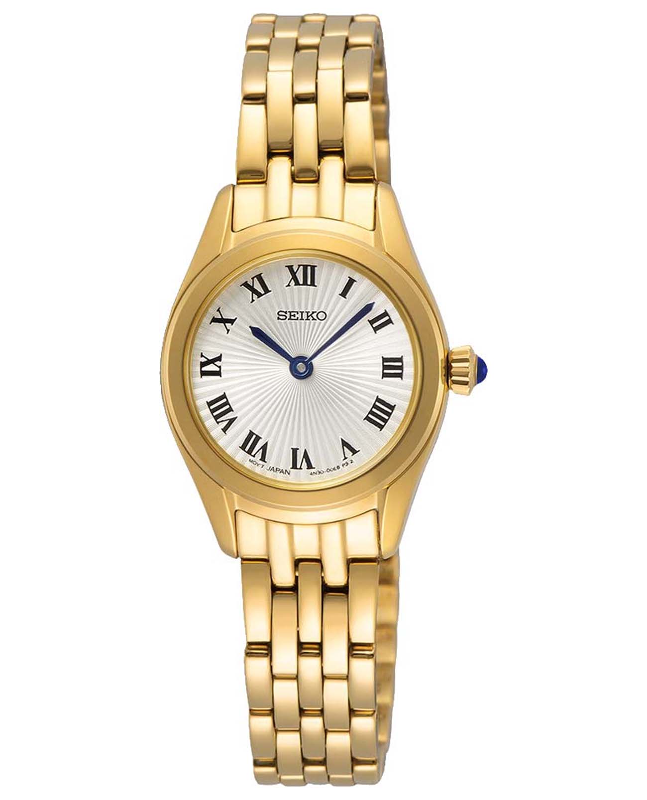 Женские японские часы Seiko Conceptual Series Dress SWR040P1, кварцевый механизм с высокой точностью. Класс водозащиты: 50 метров, позволит защитить корпус от случайных брызг или капель дождя. Корпус часов изготовлен из стали, позолоченного цвета.