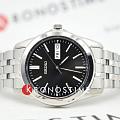 Мужские кварцевые часы Seiko — это элегантный аксессуар в классическом стиле. Корпус размером 38 мм и толщиной 8 мм выполнен из нержавеющей стали. Циферблат чёрного цвета оформлен индексами и стрелками. Указатели дня недели и даты вынесены на отдельные субциферблаты. Стрелки и метки с люминесцентным покрытиемЛюминесцентное покрытиеПозволяет считывать показания времени в темноте. Производители наносят на стрелки, часовые индексы, безель или поверхность циферблата светонакопительный состав, дающий холодное свечение., обеспечивающим хорошую читаемость в темноте. Циферблат защищён прочным защищён минеральным стекломМинеральное стеклоМинеральное стекло представляет собой искусственно выращенный минерал кварца. Такое стекло отличается особой устойчивостью к повреждениям и царапинам. Уступает по некоторым качествам сапфировому стеклу. от компании Seiko. Часы оснащены стальным браслетом с раскладной застёжкойРаскладная застёжкаТакой тип застёжки используется только на браслетах из металла. Она никогда не раскрывается полностью, происходит разделение на 2 и более частей. Раскладывающая застёжка снизит вероятность потери часов к минимуму.. Водонепроницаемость 30 м позволяет использовать часы в повседневных условиях. Идеальный выбор для тех, кто ценит японское качество и лаконичный дизайн.