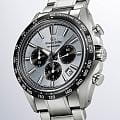 Модель SLGC007G из коллекции Grand Seiko Evolution 9 — это высокоточный дайверский хронографХронографФункция позволяет измерять отрезки времени с особой точностью: часы, минуты, секунды. Верным признаком хронографа является наличие на циферблате 3 дополнительных окошек-счётчиков. с секундомеромСекундомерСекундоме́р — прибор, способный измерять интервалы времени с точностью до долей секунды., сочетающий в себе передовые технологии и японскую эстетику. Корпус и браслет выполнены из титанового сплава Brilliant Hard Titanium, обеспечивая лёгкость и устойчивость к коррозии. Циферблат с матовой отделкой и крупными метками покрытыми люминесцентным покрытиемЛюминесцентное покрытиеПозволяет считывать показания времени в темноте. Производители наносят на стрелки, часовые индексы, безель или поверхность циферблата светонакопительный состав, дающий холодное свечение. гарантирует отличную читаемость в любых условиях. Часы оснащены автоматическим механизмом 9SC5. Диаметр корпуса составляет 43.2 мм, толщина 15.3 мм. Циферблат защищён сапфировым стекломСапфировое стеклоПрочный и надёжный материал из кристалла сапфира синтетического происхождения, характеризующийся особой твёрдостью и устойчивостью к царапинам и повреждениям. с антибликовым покрытиемАнтибликовое покрытиеСлой оксида металла в 0,13-0,3 микрон, благодаря которому стекло часов не бликует и не отражает свет. Антибликовое покрытие уменьшает отражение света в 10 раз, обеспечивая отличную читаемость показателей циферблата. на внутренней стороне. Установлена раскладная застёжка с фиксаторомРаскладная застёжкаТакой тип застёжки используется только на браслетах из металла. Она никогда не раскрывается полностью, происходит разделение на 2 и более частей. Раскладывающая застёжка снизит вероятность потери часов к минимуму. обеспечивает комфортное ношение. Шкала тахиметраТахиметрРазмеченная шкала, располагается на ободке или безеле часов. Тахиметр позволяет рассчитать скорость на определённом участке пути, расстояние измеряется в километрах или милях. на керамическом безелеБезельВнешний ободок, закрепляющий стекло. В спортивных часах так называется поворотное кольцо с делениями на циферблате, выполняет роль таймера – замеряет отрезки времени на шкале. Неподвижный безель – элемент декора. Однонаправленно вращающийся безель на дайверских часах позволяет фиксировать моменты погружения и выныривания на поверхность.. Модель обладает водонепроницаемостью до 100 метров идеальным выбором для профессиональных дайверов и ценителей надёжных часов.