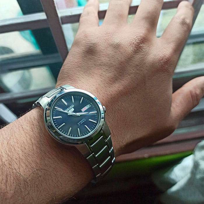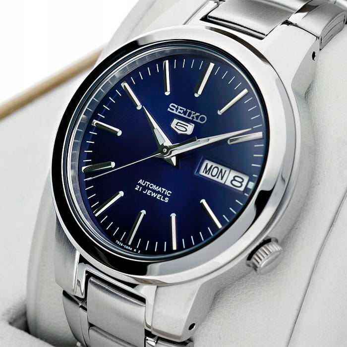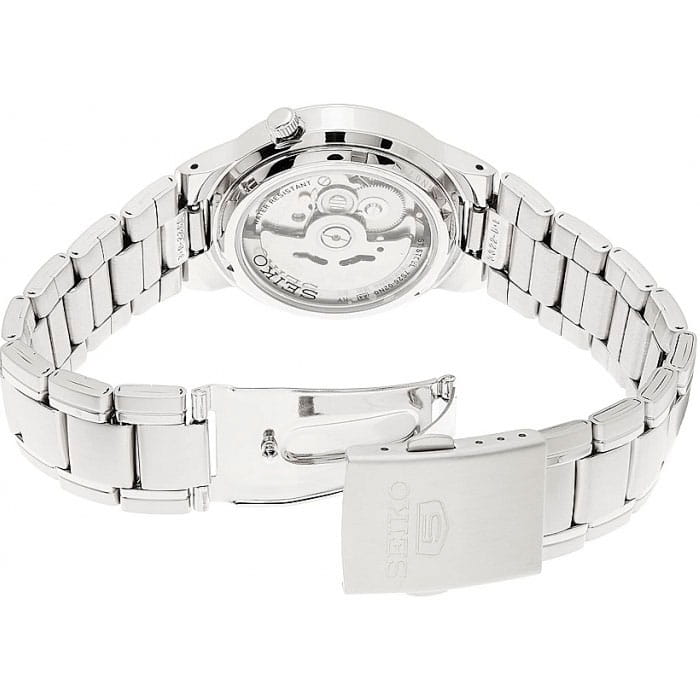 Seiko 5 SNKA05K1 — мужская автоматическая модель из классической линейки Seiko 5 Regular, сочетающая практичность и сдержанный дизайн. Корпус диаметром 37 мм и браслет выполнены из нержавеющей стали, создавая универсальный и надёжный образ. Защитную функцию выполняет минеральное стеклоМинеральное стеклоМинеральное стекло представляет собой искусственно выращенный минерал кварца. Такое стекло отличается особой устойчивостью к повреждениям и царапинам. Уступает по некоторым качествам сапфировому стеклу. Hardlex, устойчивое к повседневным повреждениям. В основе модели лежит автоматический калибр 7S26 с функциями часов, минут, секунд, даты и дня недели. Водозащита составляет 30 м, что защищает часы от брызг и дождя. Чёрный циферблат оформлен в лаконичном стиле с арабскими цифрами и стрелками, покрытыми люминесцентным покрытиемЛюминесцентное покрытиеПозволяет считывать показания времени в темноте. Производители наносят на стрелки, часовые индексы, безель или поверхность циферблата светонакопительный состав, дающий холодное свечение. для читаемости в темноте. Браслет из нержавеющей стали оснащён раскладной застёжкойРаскладная застёжкаТакой тип застёжки используется только на браслетах из металла. Она никогда не раскрывается полностью, происходит разделение на 2 и более частей. Раскладывающая застёжка снизит вероятность потери часов к минимуму., обеспечивающей удобство и надёжность при ежедневном использовании.