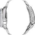 Мужские механические часы с автоподзаводом Seiko — это спортивный аксессуар из коллекции Prospex, выпущенный ограниченной серией в честь 55-летия легендарных дайверских часов Seiko — всего 5500 экземпляров. Корпус диаметром 42 мм и толщиной 13 мм выполнен из стали с частичным PVD-покрытиемPVDУльтратонкое покрытие наносится в технике вакуумного напыления, сочетает в себе нитрид титана особой прочности со слоем золота или оксида хрома. Несёт в себе декоративную или защитную функцию.. Циферблат синего цвета оформлен штрихами и логотипом бренда. Окошко даты расположено в положении 3 часов. Стрелки и метки с люминесцентным покрытиемЛюминесцентное покрытиеПозволяет считывать показания времени в темноте. Производители наносят на стрелки, часовые индексы, безель или поверхность циферблата светонакопительный состав, дающий холодное свечение. LumiBrite, обеспечивающим высокую читаемость в темноте. Циферблат защищён изогнутым сапфировым стекломСапфировое стеклоПрочный и надёжный материал из кристалла сапфира синтетического происхождения, характеризующийся особой твёрдостью и устойчивостью к царапинам и повреждениям. с антибликовым покрытиемАнтибликовое покрытиеСлой оксида металла в 0,13-0,3 микрон, благодаря которому стекло часов не бликует и не отражает свет. Антибликовое покрытие уменьшает отражение света в 10 раз, обеспечивая отличную читаемость показателей циферблата. на внутренней поверхности. Механизм — автоматический калибр 6R35 (24 камня, частота 21 600 полуколебаний в час) с возможностью ручного завода и функцией , запас хода до 70 часов. БезельБезельВнешний ободок, закрепляющий стекло. В спортивных часах так называется поворотное кольцо с делениями на циферблате, выполняет роль таймера – замеряет отрезки времени на шкале. Неподвижный безель – элемент декора. Однонаправленно вращающийся безель на дайверских часах позволяет фиксировать моменты погружения и выныривания на поверхность. — однонаправленный, вращающийся. Завинчивающаяся задняя крышка и заводная головка с защитой на позиции 4 часов повышают надёжность. Часы оснащены стальным браслетом с раскладной застёжкойРаскладная застёжкаТакой тип застёжки используется только на браслетах из металла. Она никогда не раскрывается полностью, происходит разделение на 2 и более частей. Раскладывающая застёжка снизит вероятность потери часов к минимуму. с системой блокировки. В комплекте — сменный силиконовый ремешок. Водонепроницаемость 200 м позволяет использовать часы для профессионального плавания и дайвинга. Идеальный выбор для тех, кто ценит историю, точность и мощный дизайн.