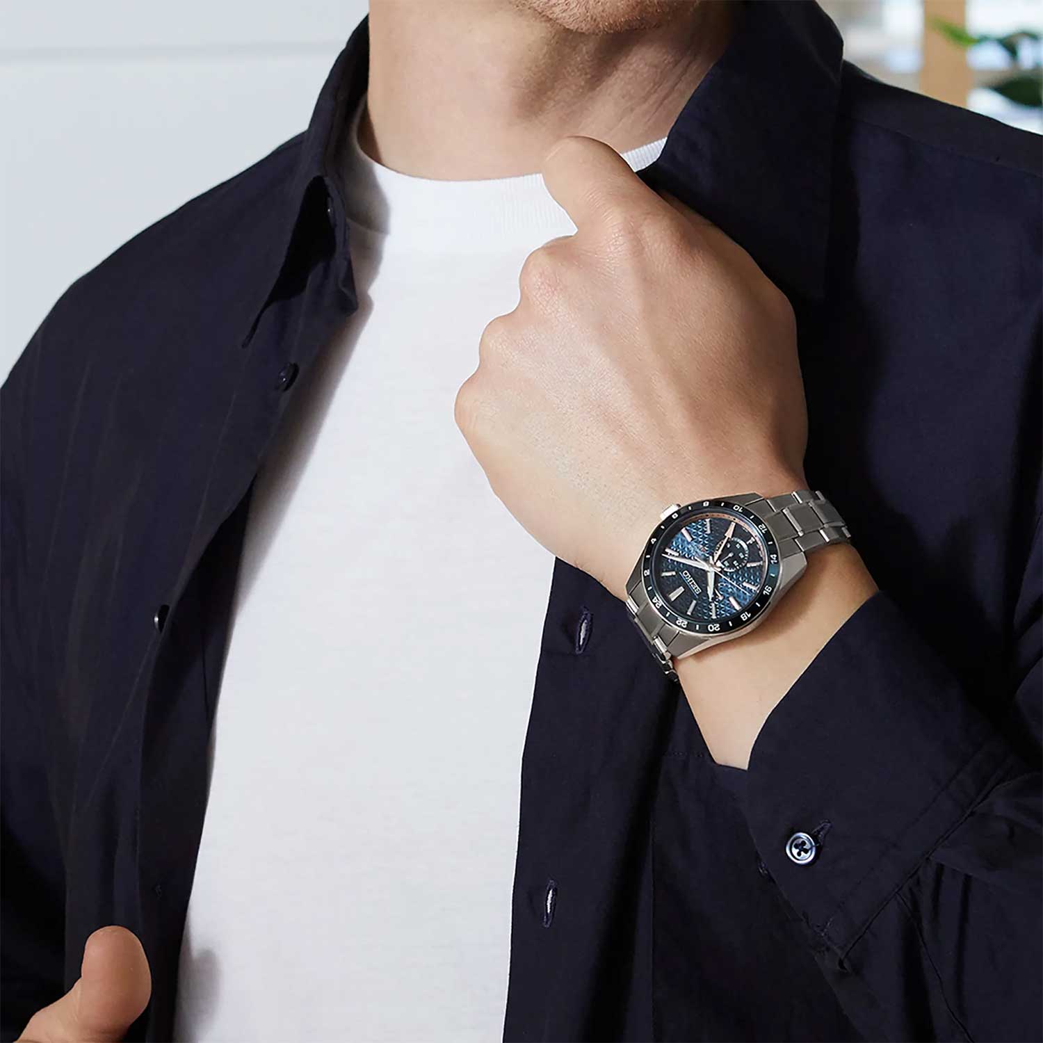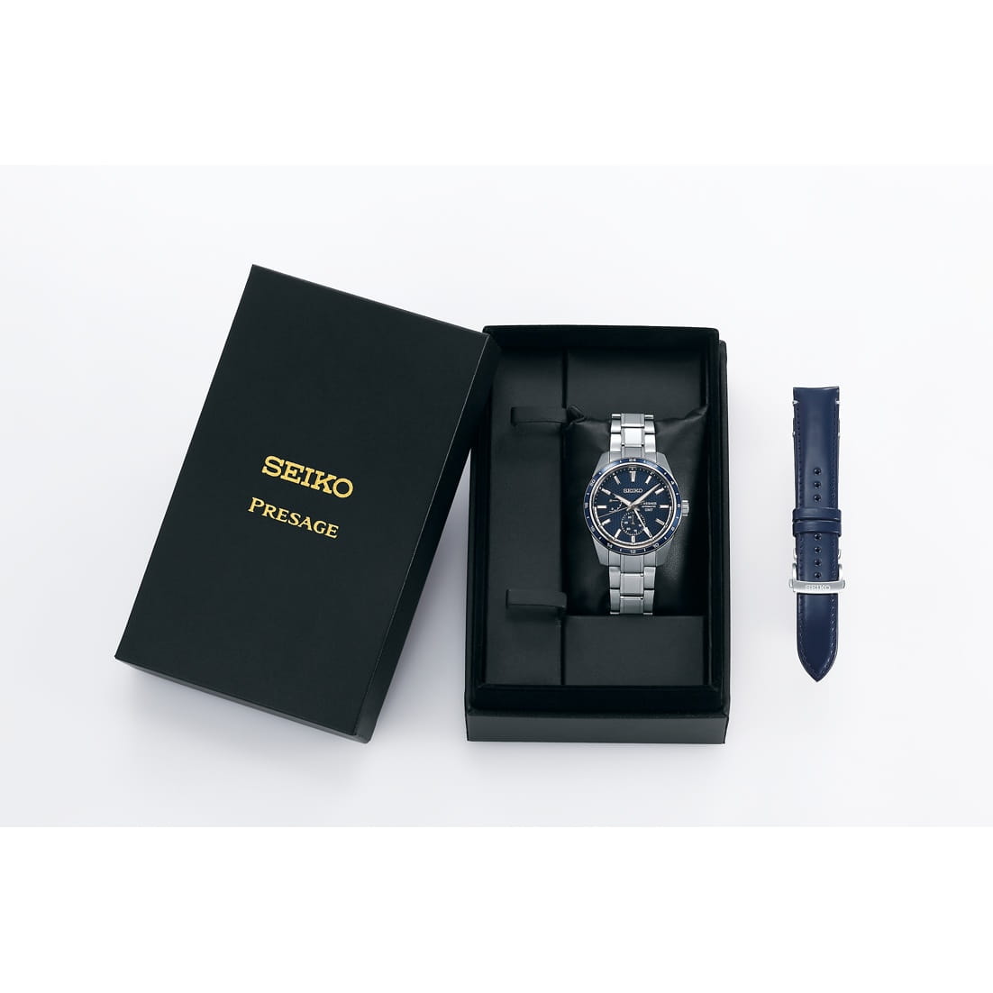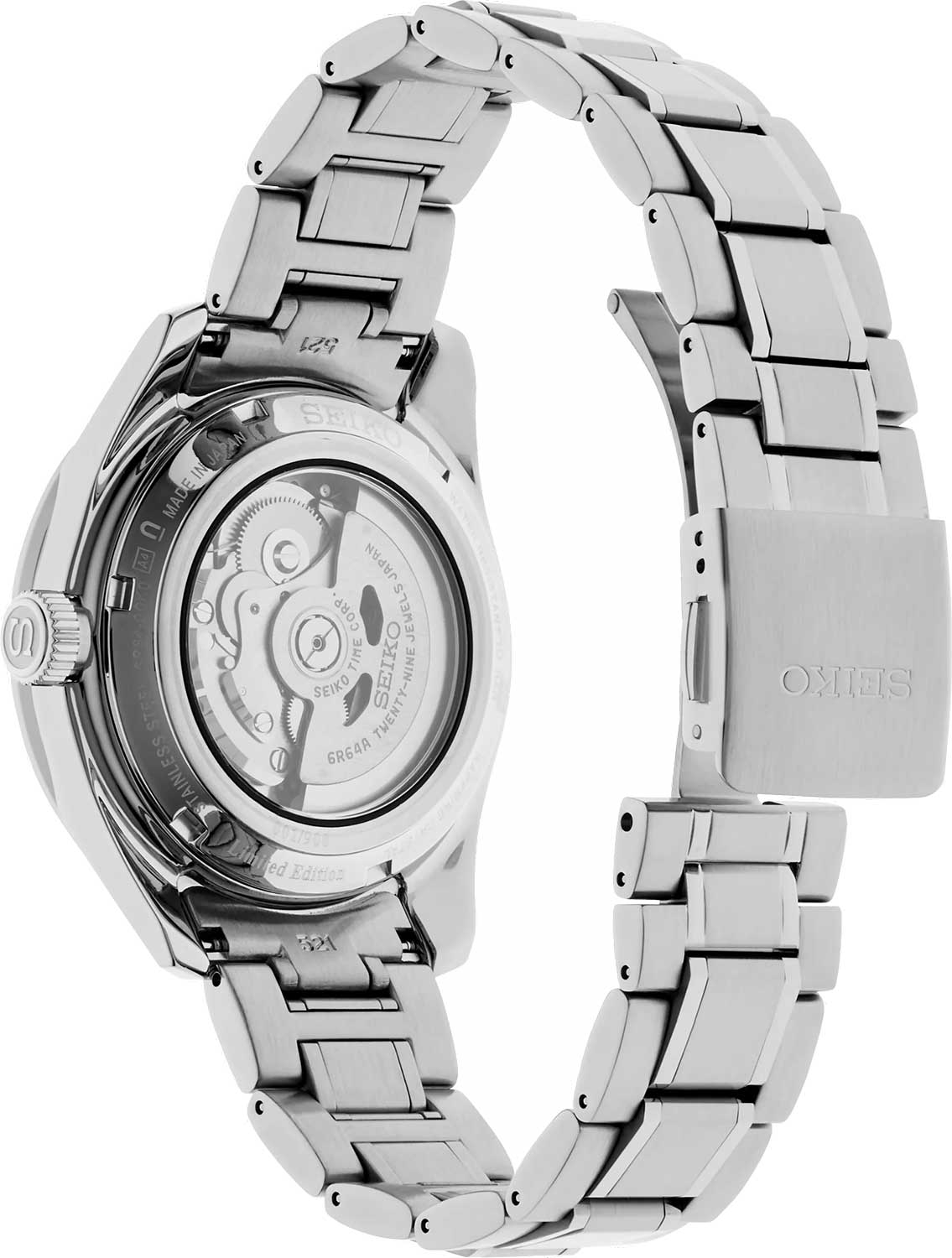 Механические часы Seiko Presage Sharp Edged GMT SPB303 — это лимитированная серия, выпущенная тиражом всего 900 экземпляров. Дизайн циферблата вдохновлён древним японским узором «Асаноха», известным ещё с эпохи Хэйан и отражающим философию гармонии и природной целостности. Часы оснащены калибром 6R64 — надёжным механическим механизмом с автоподзаводом и возможностью ручной подзаводки. Механизм работает на частоте 28 800 полуколебаний в час, имеет 29 драгоценных камней и обеспечивает запас хода до 45 часов с на циферблате. Также реализованы функция стоп-секунды для точной установки времени, отображение второго часового пояса в 24-часовом формате центральной стрелкой, а также календарная корректировка разницы во времениВторой часовой поясФункция, позволяющая отображать время двух часовых поясов одновременно., что делает модель особенно удобной для путешественников. Циферблат оформлен штриховыми метками, а дата вынесена на отдельный малый циферблат в положении 6 часов. Стрелки и индексы дополнены люминесцентным покрытиемЛюминесцентное покрытиеПозволяет считывать показания времени в темноте. Производители наносят на стрелки, часовые индексы, безель или поверхность циферблата светонакопительный состав, дающий холодное свечение. LumiBrite, обеспечивающим отличную читаемость даже в условиях слабого освещения. Защиту циферблата обеспечивает сапфировое стеклоСапфировое стеклоПрочный и надёжный материал из кристалла сапфира синтетического происхождения, характеризующийся особой твёрдостью и устойчивостью к царапинам и повреждениям. с антибликовым покрытием на внутренней поверхности, что делает его не только прочным, но и удобным для считывания информации при любом освещении. Корпус изготовлен из стали с частичным PVD-покрытиемPVDУльтратонкое покрытие наносится в технике вакуумного напыления, сочетает в себе нитрид титана особой прочности со слоем золота или оксида хрома. Несёт в себе декоративную или защитную функцию., придающим модели благородный внешний вид. Заводная головка имеет рифлёную форму, а задняя крышка — завинчивающуюся конструкцию с прозрачным окном и гравировкой уникального серийного номера, что подчёркивает эксклюзивность каждой модели. Браслет выполнен из нержавеющей стали и оснащён трёхсгибной раскладной застёжкойРаскладная застёжкаТакой тип застёжки используется только на браслетах из металла. Она никогда не раскрывается полностью, происходит разделение на 2 и более частей. Раскладывающая застёжка снизит вероятность потери часов к минимуму. с кнопочным механизмом, обеспечивающей комфорт и надёжность при ношении. В комплекте также предусмотрен сменный кожаный ремешок для более неформального образа. Часы обладают водонепроницаемостью WR 100, что позволяет использовать их при плавании или занятиях водными видами спорта без глубокого погружения. Эти часы станут идеальным выбором для тех, кто ценит историю, точность и эстетику — универсальный аксессуар, сочетающий в себе японское мастерство, практичность и современный дизайн.
