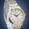 Мужские японские часы с запасом хода 41 час Seiko 5 Regular SRPH92K1 с минеральным стекломМинеральное стеклоМинеральное стекло представляет собой искусственно выращенный минерал кварца. Такое стекло отличается особой устойчивостью к повреждениям и царапинам. Уступает по некоторым качествам сапфировому стеклу. повышенной прочности, механический механизм (автоматический калибр) с высокой точностью. Класс водозащиты: 100 метров, позволит плавать, нырять и заниматься другими водными видами спорта. Корпус часов изготовлен из стали. Стальной браслет с PVD-покрытиемPVDУльтратонкое покрытие наносится в технике вакуумного напыления, сочетает в себе нитрид титана особой прочности со слоем золота или оксида хрома. Несёт в себе декоративную или защитную функцию. на раскладной застёжкеРаскладная застёжкаТакой тип застёжки используется только на браслетах из металла. Она никогда не раскрывается полностью, происходит разделение на 2 и более частей. Раскладывающая застёжка снизит вероятность потери часов к минимуму.. Неподвижный безель с PVD-покрытиемPVDУльтратонкое покрытие наносится в технике вакуумного напыления, сочетает в себе нитрид титана особой прочности со слоем золота или оксида хрома. Несёт в себе декоративную или защитную функцию.. Окошко даты находится в положении 3 часа. Заводная коронка находится на «3 часах».