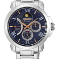 Японские мужские часы c механизмом Seiko Kinetic Seiko Premier SRX017P1, автокварцевый механизм с высокой точностью. Сапфировое стекло устойчивое к появлению царапин, обладающее высокой прозрачностью. Класс водозащиты: 100 метров, позволит плавать, нырять и заниматься другими водными видами спорта. Корпус часов изготовлен из стали, серебристого цвета.