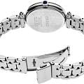 Женские японские часы Seiko Discover More SRZ553 c кварцевым механизмом с высокой точностью. Минеральное стеклоМинеральное стеклоМинеральное стекло представляет собой искусственно выращенный минерал кварца. Такое стекло отличается особой устойчивостью к повреждениям и царапинам. Уступает по некоторым качествам сапфировому стеклу., устойчивое к появлению царапин, обладающее высокой прозрачностью. Класс водозащиты: 50 метров, позволит плавать, нырять и заниматься другими водными видами спорта. Серебристый корпус и браслет часов изготовлен из нержавеющей стали. Заводная головка украшена камнем в форме кабошона. Браслет с тройной раскладной застёжкойРаскладная застёжкаТакой тип застёжки используется только на браслетах из металла. Она никогда не раскрывается полностью, происходит разделение на 2 и более частей. Раскладывающая застёжка снизит вероятность потери часов к минимуму.. Seiko — это гармония изящного дизайна и технологичной надёжности, компактный и стильный выбор для повседневной классики.