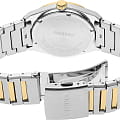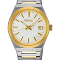Мужские японские часы Seiko Conceptual Series Dress SUR558P1 с сапфировым стекломСапфировое стеклоПрочный и надёжный материал из кристалла сапфира синтетического происхождения, характеризующийся особой твёрдостью и устойчивостью к царапинам и повреждениям., кварцевый механизм с высокой точностью. Класс водозащиты: 100 метров, позволит плавать, нырять и заниматься другими водными видами спорта. Корпус часов изготовлен из стали. Стальной браслет с частичным  PVD-покрытиемPVDУльтратонкое покрытие наносится в технике вакуумного напыления, сочетает в себе нитрид титана особой прочности со слоем золота или оксида хрома. Несёт в себе декоративную или защитную функцию. на раскладной застёжкеРаскладная застёжкаТакой тип застёжки используется только на браслетах из металла. Она никогда не раскрывается полностью, происходит разделение на 2 и более частей. Раскладывающая застёжка снизит вероятность потери часов к минимуму.. Стрелки и метки с люминесцентным покрытиемЛюминесцентное покрытиеПозволяет считывать показания времени в темноте. Производители наносят на стрелки, часовые индексы, безель или поверхность циферблата светонакопительный состав, дающий холодное свечение. LumiBrite. Окошко даты находится в положении 3 часа. Неподвижный безельБезельВнешний ободок, закрепляющий стекло. В спортивных часах так называется поворотное кольцо с делениями на циферблате, выполняет роль таймера – замеряет отрезки времени на шкале. Неподвижный безель – элемент декора. Однонаправленно вращающийся безель на дайверских часах позволяет фиксировать моменты погружения и выныривания на поверхность. с PVD-покрытиемPVDУльтратонкое покрытие наносится в технике вакуумного напыления, сочетает в себе нитрид титана особой прочности со слоем золота или оксида хрома. Несёт в себе декоративную или защитную функцию..
