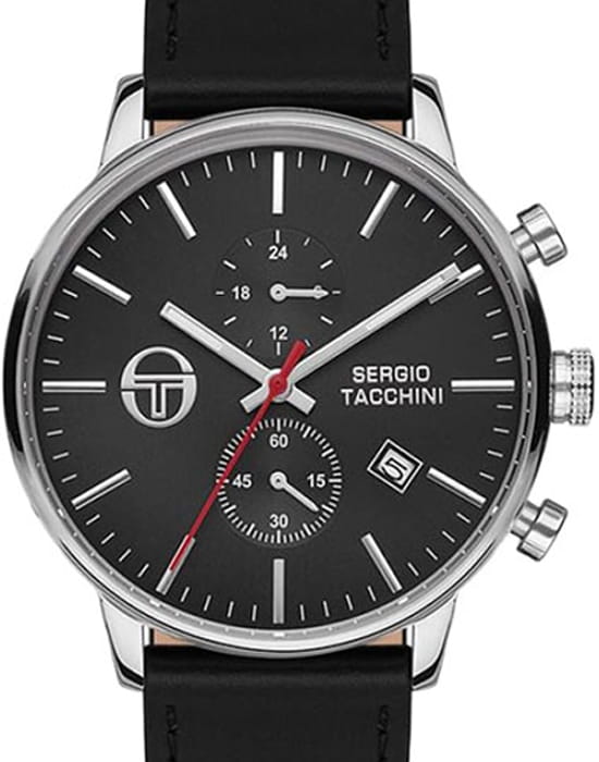 Sergio Tacchini ST.8.122.01 — мужские часы с лаконичным дизайном и спортивной функциональностью. Корпус из нержавеющей стали сочетает строгость линий с лёгкостью минимализма, а глубокий чёрный циферблат с контрастными белыми метками и стрелками обеспечивает превосходную читаемость. Модель оснащена хронографомХронографФункция позволяет измерять отрезки времени с особой точностью: часы, минуты, секунды. Верным признаком хронографа является наличие на циферблате 3 дополнительных окошек-счётчиков. с двумя счётчиками, позволяющим измерять промежутки времени, и у отметки «4 часа». Надёжное минеральное стеклоМинеральное стеклоМинеральное стекло представляет собой искусственно выращенный минерал кварца. Такое стекло отличается особой устойчивостью к повреждениям и царапинам. Уступает по некоторым качествам сапфировому стеклу. защищает циферблат от царапин, а мягкий кожаный ремешок гарантирует комфорт при длительном ношении. Водозащита 50 м подходит для повседневного использования. Sergio Tacchini — это элегантное воплощение спортивного характера в чистом итальянском стиле.