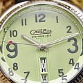 Класс водозащиты часов составляет 100 метров, позволит плавать, нырять и заниматься другими водными видами спорта. Эти часы идеально подойдут для повседневного использования, сочетая в себе стиль, надежность и функциональность. Стрелки и метки с люминесцентным покрытиемЛюминесцентное покрытиеПозволяет считывать показания времени в темноте. Производители наносят на стрелки, часовые индексы, безель или поверхность циферблата светонакопительный состав, дающий холодное свечение.. Окошки дня недели и даты находятся в положении 6 часов.