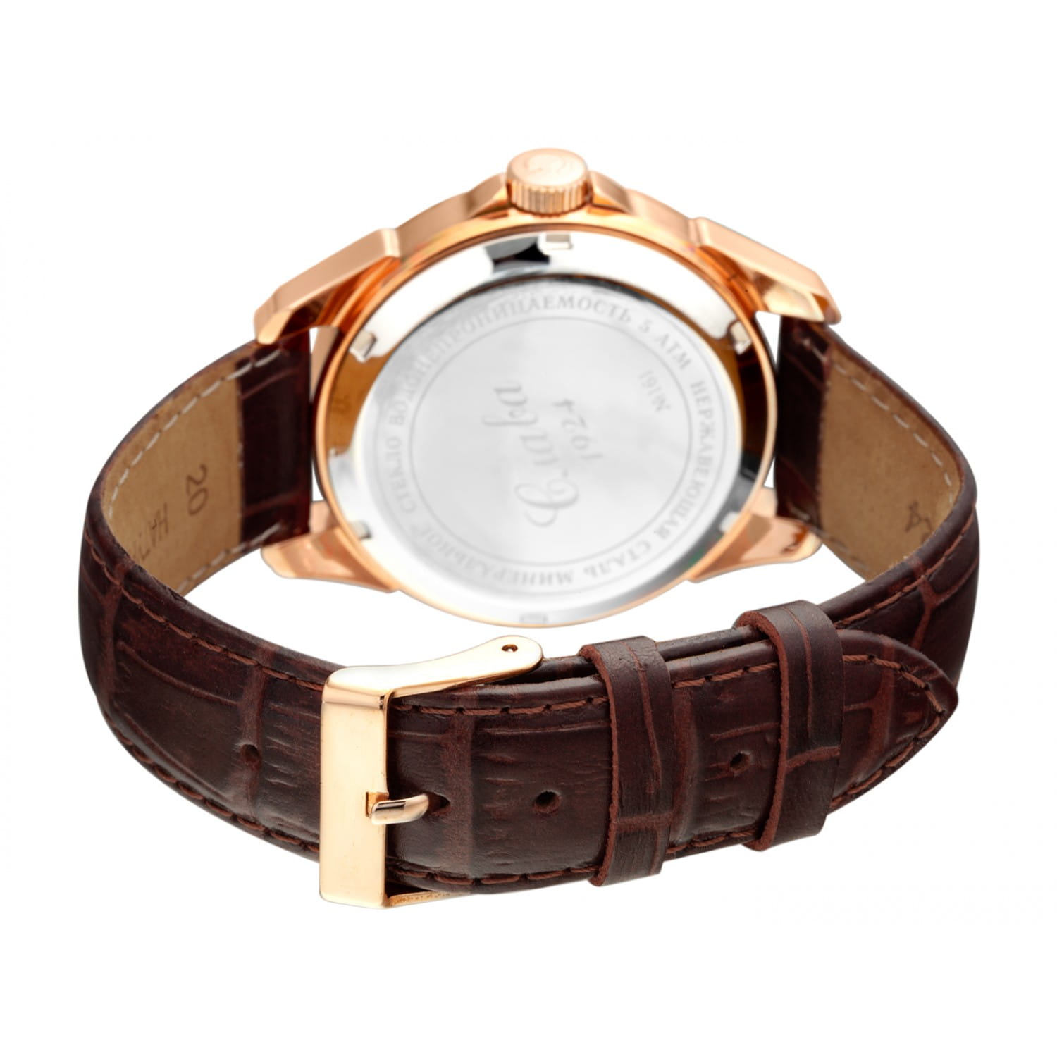Класс водозащиты часов составляет 30 метров, что позволяет защитить корпус от случайных брызг и капель дождя. Кожаный браслет с стандартной застежкой обеспечивает комфортное ношение и надежную фиксацию на запястье. Эти часы идеально подойдут для повседневного использования, сочетая в себе стиль, надежность и функциональность.