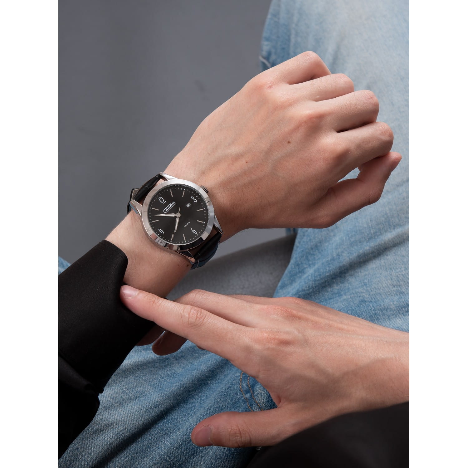 Класс водозащиты часов составляет 30 метров, что позволяет защитить корпус от случайных брызг и капель дождя.Кожаный ремешок на стандартной застежке. Эти часы идеально подойдут для повседневного использования, сочетая в себе стиль, надежность и функциональность.
