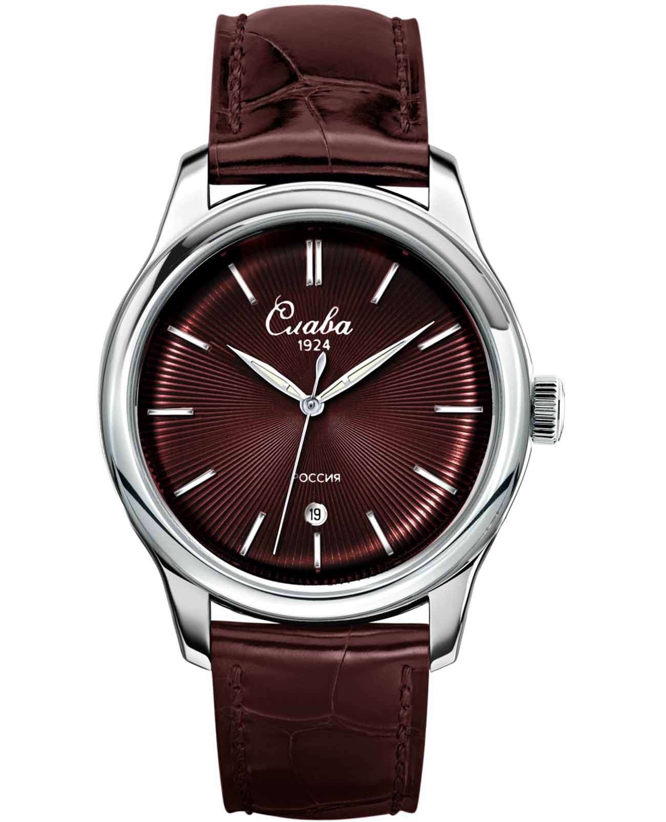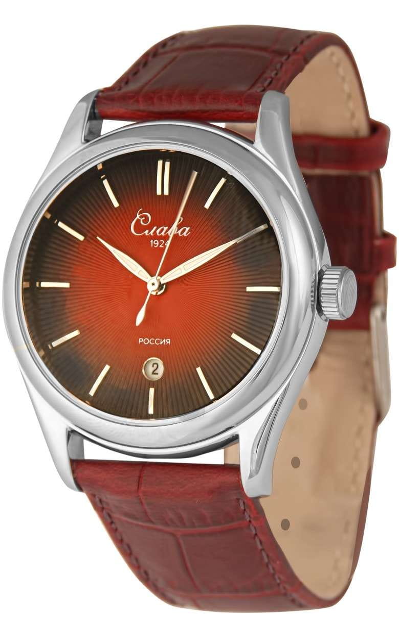 Российские наручные часы Слава Сенат 2490539/300-2115 станут отличным дополнением к вашему образу и идеальным выбором для тех, кто ценит стиль, комфорт и надежность. Эти часы оснащены японским кварцевым механизмом Miyota 2115, что гарантирует их точность и долговечность. Корпус часов диаметром 38 мм и толщиной 11 мм выполнен из прочной стали, а бордовый циферблат с изящными метками защищен сапфировым стекломСапфировое стеклоПрочный и надёжный материал из кристалла сапфира синтетического происхождения, характеризующийся особой твёрдостью и устойчивостью к царапинам и повреждениям., устойчивым к царапинам. Окошко календаря, расположенное в положении 6 часов, добавляет функциональности и удобства в повседневном использовании. Стрелки с люминесцентным покрытиемЛюминесцентное покрытиеПозволяет считывать показания времени в темноте. Производители наносят на стрелки, часовые индексы, безель или поверхность циферблата светонакопительный состав, дающий холодное свечение., что облегчает чтение времени даже в условиях слабого освещения. Эти часы обладают водозащитой 50WR, что позволяет не переживать за их сохранность в условиях повышенной влажности. Завершает образ кожаный ремешок с классической застежкой, обеспечивающий комфортную посадку на запястье.