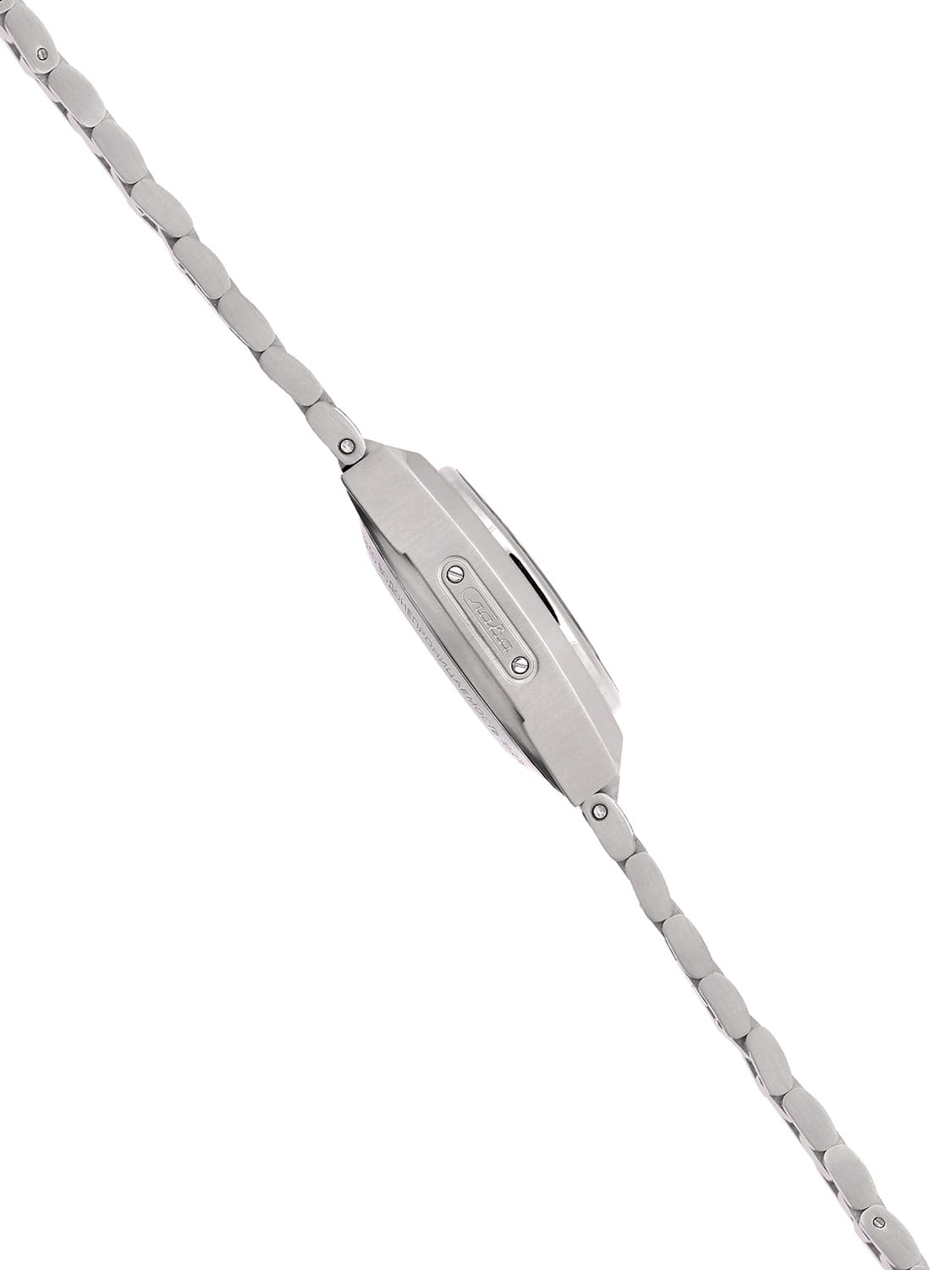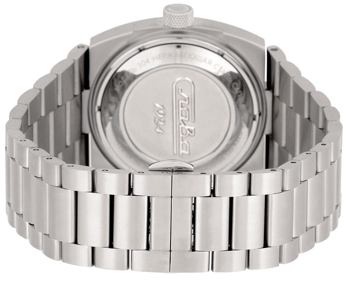 Российские часы Слава 3045710/100-8205 оснащены механизмом Miyota 8205, что обеспечивает исключительную надежность и точность хода. Корпус и браслет часов выполнены из стали, что придает им долговечность и устойчивость к внешним воздействиям. Сапфировое стеклоСапфировое стеклоПрочный и надёжный материал из кристалла сапфира синтетического происхождения, характеризующийся особой твёрдостью и устойчивостью к царапинам и повреждениям.. Класс водозащиты часов составляет 100 метров, позволит плавать, нырять и заниматься другими водными видами спорта. Эти часы идеально подойдут для повседневного использования, сочетая в себе стиль, надежность и функциональность. Стрелки с люминесцентным покрытиемЛюминесцентное покрытиеПозволяет считывать показания времени в темноте. Производители наносят на стрелки, часовые индексы, безель или поверхность циферблата светонакопительный состав, дающий холодное свечение.. Окошки дня недели и даты находятся в положении 3 часа. Стальной браслет на раскладной застёжкеРаскладная застёжкаТакой тип застёжки используется только на браслетах из металла. Она никогда не раскрывается полностью, происходит разделение на 2 и более частей. Раскладывающая застёжка снизит вероятность потери часов к минимуму..