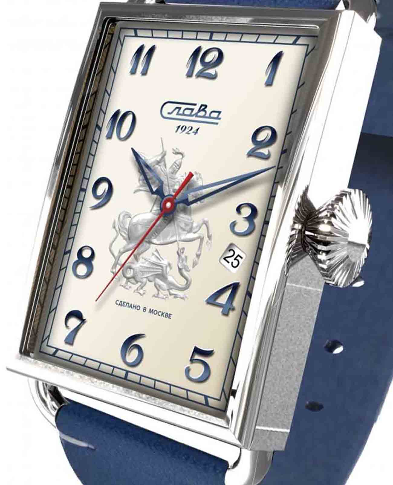 Часы Слава Москва 8700782/300-2414 — это воплощение элегантности и стиля, которое станет идеальным дополнением к вашему деловому гардеробу. Созданные в России, они оснащены надежным механическим механизмом калибра Слава 2414. Корпус выполнен из высококачественной стали, что обеспечивает долговечность и изысканный внешний вид. Бежевый циферблат украшен изображением Георгия Победоносца и защищен прочным сапфировым стекломСапфировое стеклоПрочный и надёжный материал из кристалла сапфира синтетического происхождения, характеризующийся особой твёрдостью и устойчивостью к царапинам и повреждениям., которое устойчиво к царапинам. Арабские цифры и окошко даты, расположенное между отметками 3 и 4 часа, добавляют функциональности и удобства в использовании. Задняя крышка, крепящаяся на 4 винтах, украшена надписью «Москва», подчеркивая уникальность и оригинальность модели. Кожаный ремешок с классической застежкой и системой быстрой замены не только обеспечивает комфорт, но и позволяет легко менять его по вашему желанию. Часы обладают водозащитой 50WR, что делает их подходящими для ежедневного ношения. Компактные габариты и вес в 70 грамм делают их удобными и практически незаметными на запястье. Эта лимитированная серия выпущена в количестве всего 500 экземпляров, что придает особую ценность и эксклюзивность вашему выбору. Часы поставляются в стильной подарочной упаковке, что делает их отличным подарком для ценителей высокого качества и утонченного дизайна.