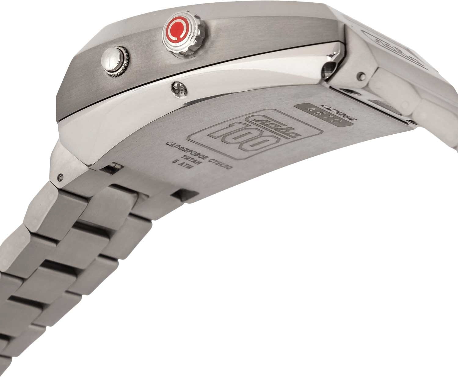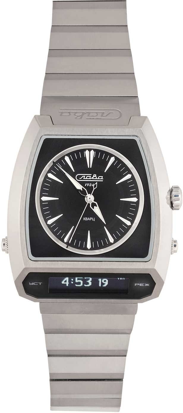 Часы Слава 9000737/100-GL32 представляют собой уникальное сочетание ретро-стиля и современных технологий, которые обязательно привлекут внимание коллекционеров и ценителей эксклюзивных аксессуаров. Выпущенные в России, эти лимитированные часы вдохновлены дизайном моделей для водителей, популярных в 1970-х годах. В основе их создания лежит концепция, позволяющая легко считывать время, не отрывая рук от руля, что делает их особенно удобными для автолюбителей. Корпус и браслет изготовлены из легкого и прочного титана, придающего часам элегантный и современный вид. Часы оснащены двумя механизмами, включая кварцевый механизм калибра Miyota GL32 и специально разработанный электронный механизм, который позволяет одновременно отображать время в двух часовых поясах. Черный циферблат с штриховыми метками надежно защищен сапфировым стекломСапфировое стеклоПрочный и надёжный материал из кристалла сапфира синтетического происхождения, характеризующийся особой твёрдостью и устойчивостью к царапинам и повреждениям., устойчивым к царапинам. Стрелки с люминесцентным покрытиемЛюминесцентное покрытиеПозволяет считывать показания времени в темноте. Производители наносят на стрелки, часовые индексы, безель или поверхность циферблата светонакопительный состав, дающий холодное свечение., что облегчает чтение времени даже в условиях слабого освещения. Дополнительные функции включают будильник, секундомер, таймер обратного отсчета и автоматический календарь, который отображает число, день недели, месяц и год. Рифленая заводная головка и задняя крышка, крепящаяся на винтах, подчеркивают внимание к деталям. Индивидуальный номер, выгравированный на боковой стенке, подтверждает эксклюзивность каждой модели. Титановый браслет с застежкой «бабочка»Застёжка "бабочка"Такой вид застёжки дополняется предохранителями, помогающими избежать случайного раскрытия браслета. Обладают изящным исполнением. обеспечивает надежную фиксацию на запястье. Лимитированная серия ограничена 500 экземплярами, что подчеркивает их уникальность. Часы поставляются в подарочной упаковке, что делает их идеальным выбором для подарка или личной коллекции. Часы обладают водозащитой уровня WR 50, что позволяет им выдерживать воздействие воды в повседневных ситуациях.