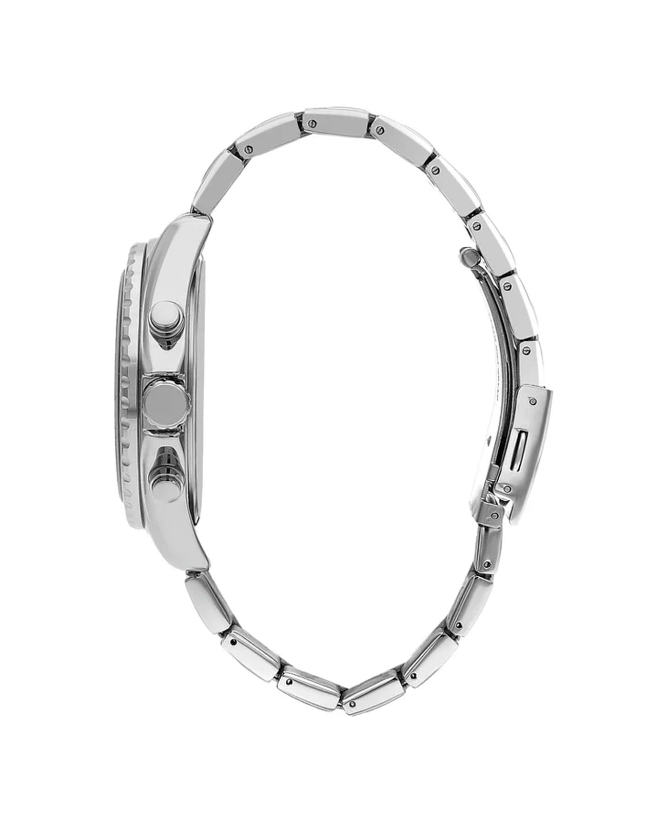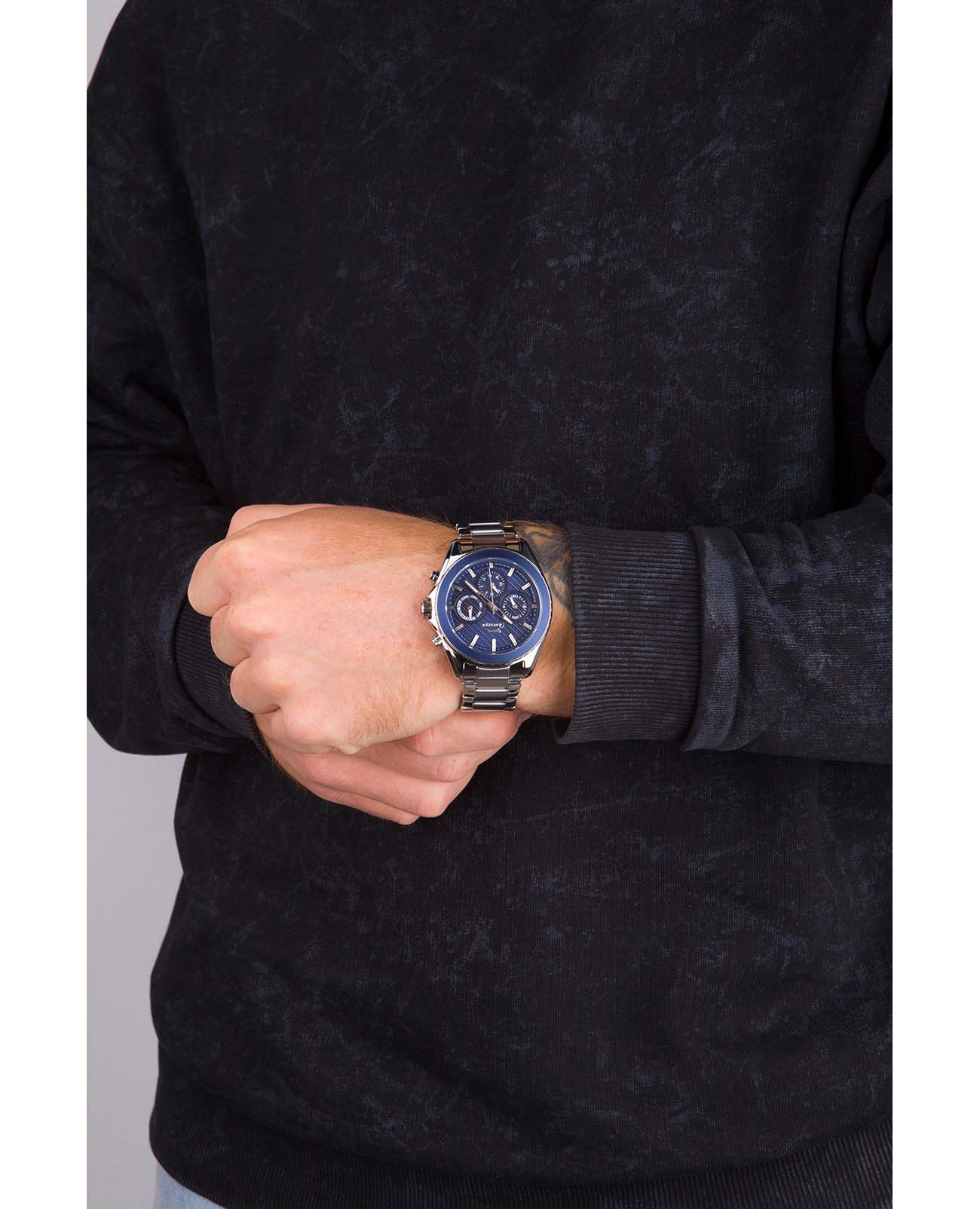 Мужские наручные часы Slazenger SL.09.2022.2.01 сочетают в себе классический дизайн и надежность современных технологий. Модель обладает круглым корпусом диаметром 45 мм, изготовленным из суперметалла, что обеспечивает высокую устойчивость к внешним воздействиям. Браслет выполнен из суперметалла серебристого цвета с раскладной застежкойРаскладной замокДанный вариант застежки используется только на часах с металлическим браслетом. Отличительная особенность такого крепления в том, что длина браслета становится универсальной и вы можете самостоятельно отрегулировать нужный вам размер – застежка просто двигается по браслету часов., гарантирующей комфортное ношение и безопасность. Циферблат декорирован стрелками с люминесцентным покрытиемЛюминесцентное покрытиеПозволяет считывать показания времени в темноте. Производители наносят на стрелки, часовые индексы, безель или поверхность циферблата светонакопительный состав, дающий холодное свечение., а дополнительные малые циферблаты отображают дату, день недели и текущее время в 24-часовом формате. Для защиты используется минеральное стеклоМинеральное стеклоМинеральное стекло представляет собой искусственно выращенный минерал кварца. Такое стекло отличается особой устойчивостью к повреждениям и царапинам. Уступает по некоторым качествам сапфировому стеклу., обеспечивающее прочную защиту от царапин. БезельБезельВнешний ободок, закрепляющий стекло. В спортивных часах так называется поворотное кольцо с делениями на циферблате, выполняет роль таймера – замеряет отрезки времени на шкале. Неподвижный безель – элемент декора. Однонаправленно вращающийся безель на дайверских часах позволяет фиксировать моменты погружения и выныривания на поверхность. с IP-покрытиемIP-покрытиеМетод ионного напыления. Демонстрирует повышенную устойчивость к истиранию, окислению и химическим веществам. Под воздействием высокого давления и температуры около 1500°C молекулы металла надёжно соединяются с частицами корпуса часов.. Часы работают на японском кварцевом механизме, что гарантирует точное время без необходимости подзаводки. Водонепроницаемость часов достигает 5 атмосфер, что позволяет использовать их при мытье рук или хождении под дождем, однако не рекомендуется для плавания или других водных видов спорта. Вес модели составляет 147 грамм, а производитель предоставляет гарантию сроком 12 месяцев. SL.09.2022.2.01 — это стильный аксессуар, который станет отличным дополнением как формального, так и casual образа мужчины.