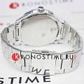 Часы работают на японском кварцевом механизме, что гарантирует точное время без необходимости подзаводки. Модель также оснащена функциями отображения даты, дня недели, 24-часовым указателем времени и вторым часовым поясомВторой часовой поясФункция, позволяющая отображать время двух часовых поясов одновременно., делая ее практичной для повседневного использования.
