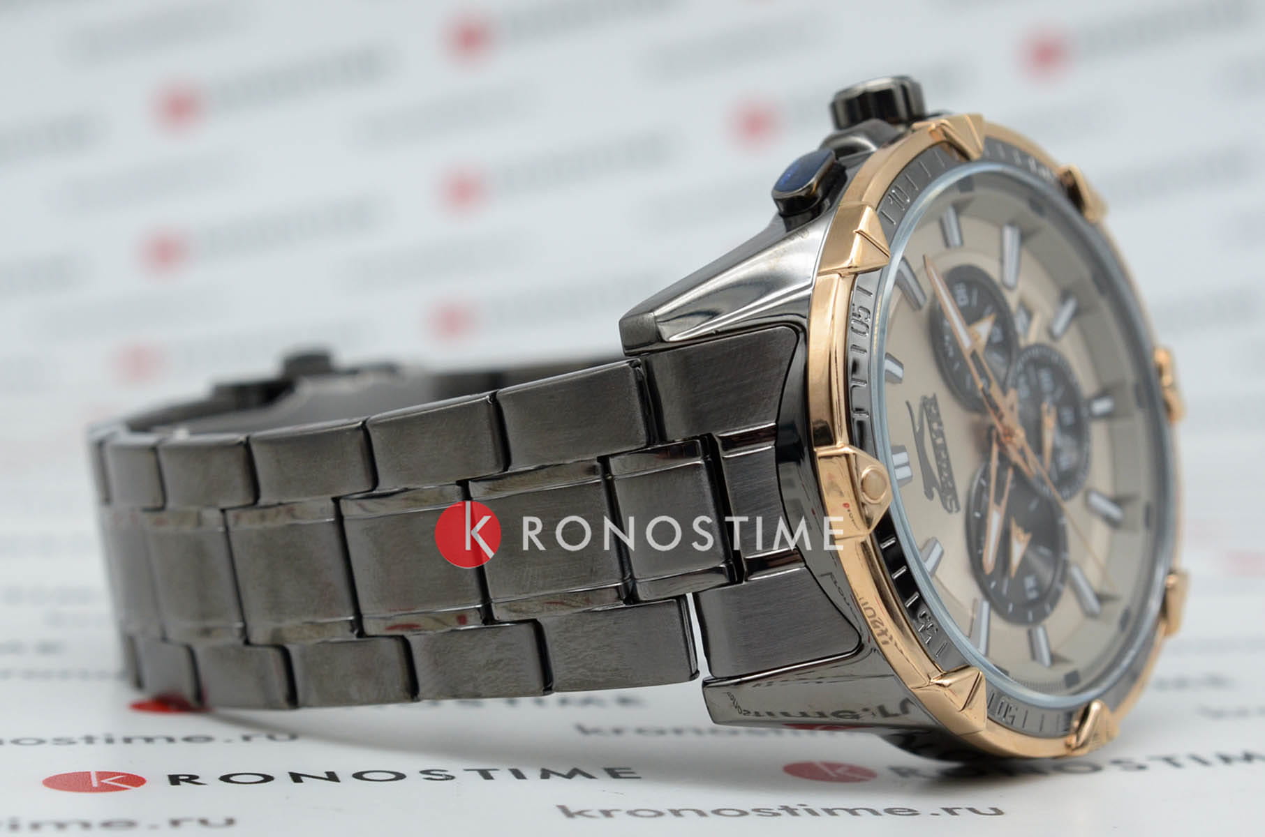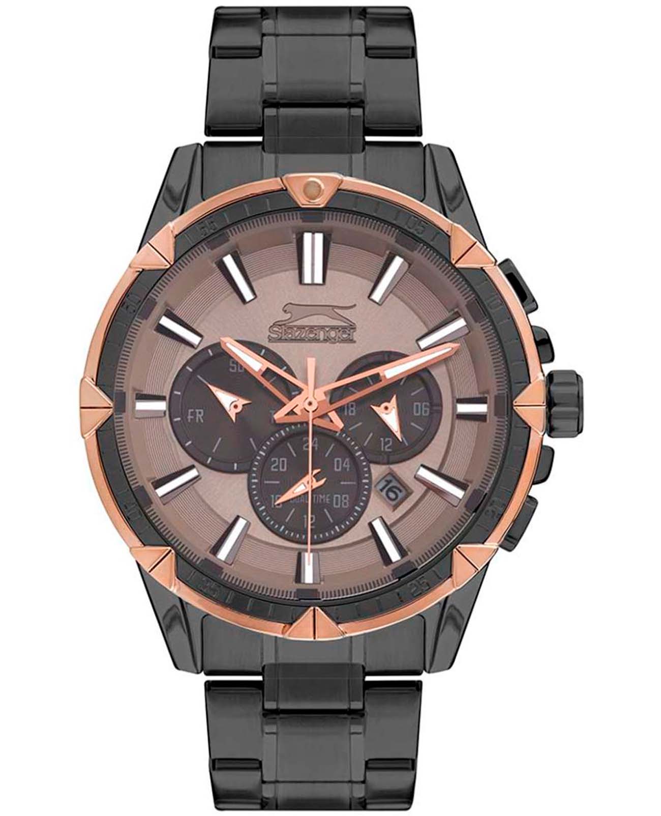 Мужские наручные часы Slazenger SL.09.2035.2.03 — это элегантный и функциональный аксессуар, сочетающий в себе классический дизайн и современные технологии. Модель обладает круглым корпусом диаметром 46 мм, выполненный из суперметалла и безельБезельВнешний ободок, закрепляющий стекло. В спортивных часах так называется поворотное кольцо с делениями на циферблате, выполняет роль таймера – замеряет отрезки времени на шкале. Неподвижный безель – элемент декора. Однонаправленно вращающийся безель на дайверских часах позволяет фиксировать моменты погружения и выныривания на поверхность. с IP-покрытиемIP-покрытиеМетод ионного напыления. Демонстрирует повышенную устойчивость к истиранию, окислению и химическим веществам. Под воздействием высокого давления и температуры около 1500°C молекулы металла надёжно соединяются с частицами корпуса часов., что обеспечивает устойчивость к царапинам и коррозии.