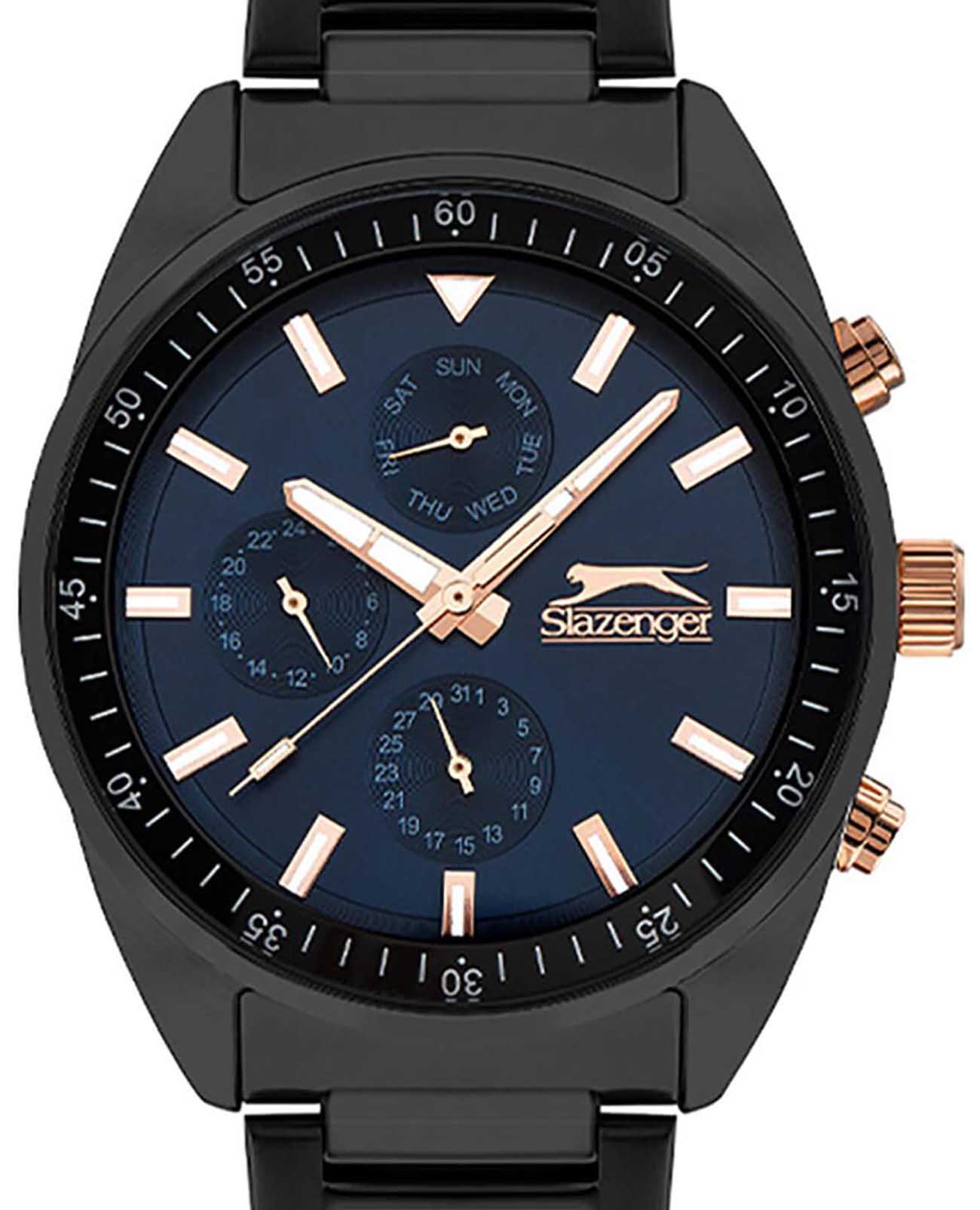 Slazenger SL.09.2040.2.01 — стильные мужские часы, сочетающие элегантный дизайн и функциональность. Корпус выполнен из суперметалла с PVD-покрытиемPVDУльтратонкое покрытие наносится в технике вакуумного напыления, сочетает в себе нитрид титана особой прочности со слоем золота или оксида хрома. Несёт в себе декоративную или защитную функцию., придающей модели прочность и долговечность. Минеральное стеклоМинеральное стеклоМинеральное стекло представляет собой искусственно выращенный минерал кварца. Такое стекло отличается особой устойчивостью к повреждениям и царапинам. Уступает по некоторым качествам сапфировому стеклу. защищает циферблат от царапин и гарантирует превосходную читаемость. Циферблат с дополнительными индикаторами подчёркивает современный стиль. Браслет из суперметалла с PVD-покрытиемPVDУльтратонкое покрытие наносится в технике вакуумного напыления, сочетает в себе нитрид титана особой прочности со слоем золота или оксида хрома. Несёт в себе декоративную или защитную функцию. обеспечивает комфортное ношение и надёжную фиксацию на запястье. Функциональность дополняется индикацией даты, дня недели и 24-часовым форматом времени, повышая удобство использования. Водонепроницаемость 50 метров делает модель устойчивой к случайным брызгам и влаге, идеально подходя для повседневного ношения.