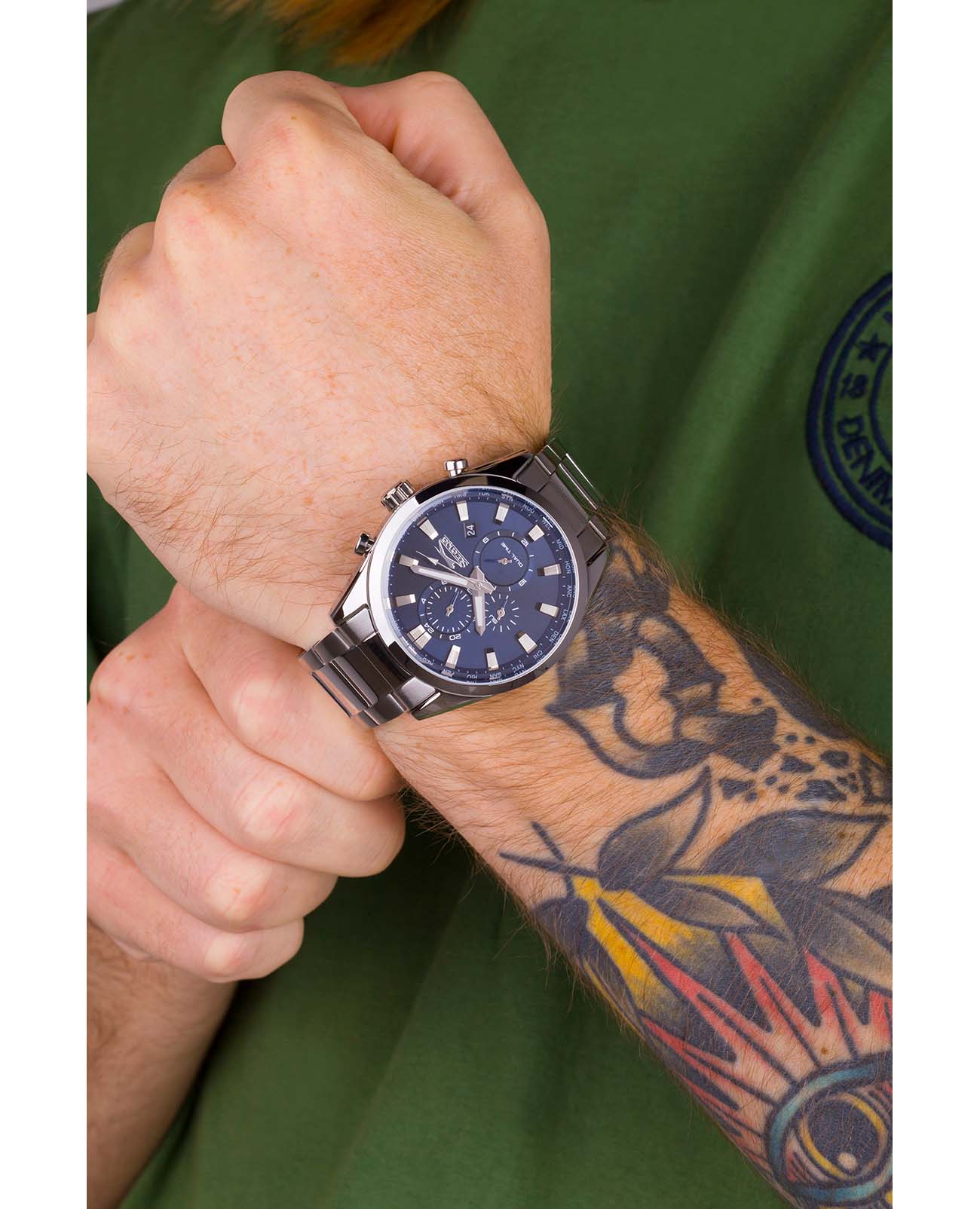 Мужские наручные часы Slazenger SL.09.2058.2.04 сочетают в себе классический дизайн и надежность современных технологий. Модель обладает круглым корпусом диаметром 45 мм, изготовленным из суперметалла, что обеспечивает высокую устойчивость к внешним воздействиям. Браслет выполнен из суперметалла на раскладной застёжкеРаскладная застёжкаТакой тип застёжки используется только на браслетах из металла. Она никогда не раскрывается полностью, происходит разделение на 2 и более частей. Раскладывающая застёжка снизит вероятность потери часов к минимуму., гарантирующей комфортное ношение и безопасность.
