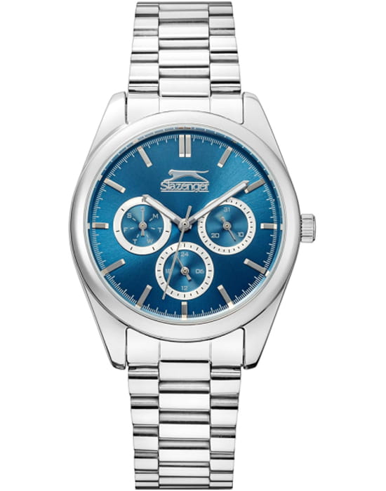 Женские наручные часы Slazenger SL.09.2063.4.06 сочетают в себе классический дизайн и высокое качество исполнения. Модель обладает круглым корпусом диаметром 36 мм, изготовленным из суперметалла, что обеспечивает устойчивость к внешним воздействиям. Браслет выполнен из суперметалла на раскладной застёжкеРаскладная застёжкаТакой тип застёжки используется только на браслетах из металла. Она никогда не раскрывается полностью, происходит разделение на 2 и более частей. Раскладывающая застёжка снизит вероятность потери часов к минимуму.. Синий циферблат украшен логотипом бренда и метками времени. Имеются дополнительные малые циферблаты для отображения даты, дня недели и текущего времени в 24-часовом формате. Для защиты используется минеральное стеклоМинеральное стеклоМинеральное стекло представляет собой искусственно выращенный минерал кварца. Такое стекло отличается особой устойчивостью к повреждениям и царапинам. Уступает по некоторым качествам сапфировому стеклу., обеспечивающее прочную защиту от царапин. Стрелки и метки имеют люминесцентное покрытиеЛюминесцентное покрытиеПозволяет считывать показания времени в темноте. Производители наносят на стрелки, часовые индексы, безель или поверхность циферблата светонакопительный состав, дающий холодное свечение., что позволяет легко читать время в темноте. Часы работают на японском кварцевом механизме, который обеспечивает точность хода без необходимости подзаводки. Водонепроницаемость часов составляет 3 атмосферы (WR30), что позволяет защитить корпус от случайных брызг или капель дождя.