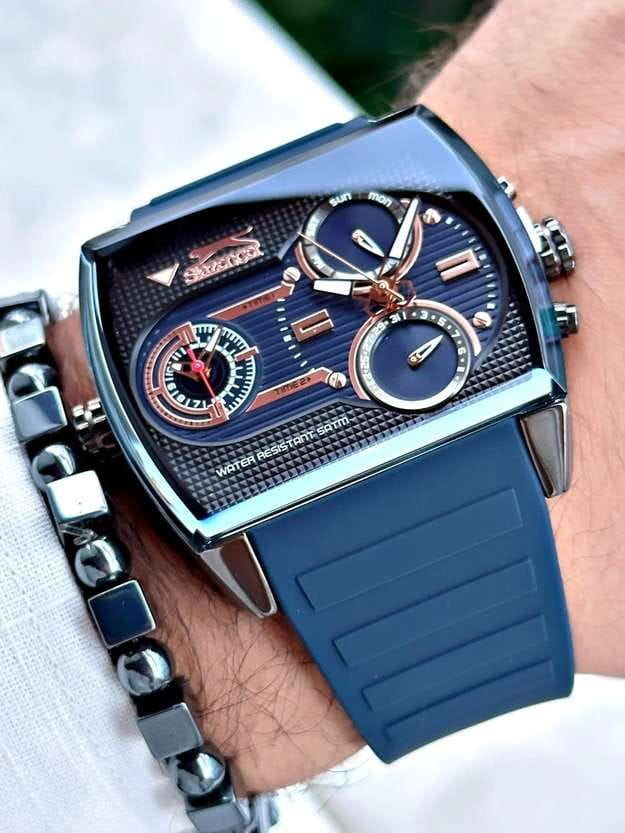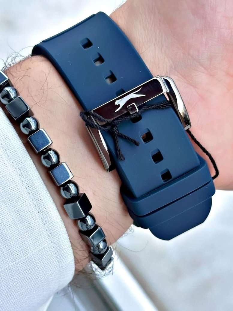 Часы Slazenger SL.09.2208.2.02 — это стильный и функциональный аксессуар для мужчин, созданный британским брендом, известным своим качеством и надежностью. Эти кварцевые часы отличаются современным дизайном и высоким уровнем функциональности. Металлический корпус с серым IP-покрытиемIP-покрытиеМетод ионного напыления. Демонстрирует повышенную устойчивость к истиранию, окислению и химическим веществам. Под воздействием высокого давления и температуры около 1500°C молекулы металла надёжно соединяются с частицами корпуса часов. обеспечивает прочность и долговечность, а минеральное стеклоМинеральное стеклоМинеральное стекло представляет собой искусственно выращенный минерал кварца. Такое стекло отличается особой устойчивостью к повреждениям и царапинам. Уступает по некоторым качествам сапфировому стеклу.  защищает циферблат от царапин и повреждений. Благодаря водозащите уровня WR 50, часы могут выдерживать случайные контакты с водой, такие как дождь или брызги. Часы снабжены резиновым ремешком синего цвета, который не только обеспечивает удобство и комфорт в ношении, но и придает им стильный и спортивный вид. Классическая застежка ремешка позволяет легко и надежно фиксировать часы на запястье. Размеры корпуса составляют 49 мм в ширину, 41,5 мм в высоту и 14 мм в толщину, что делает их заметным и выразительным аксессуаром на руке. Люминесцентное покрытиеЛюминесцентное покрытиеПозволяет считывать показания времени в темноте. Производители наносят на стрелки, часовые индексы, безель или поверхность циферблата светонакопительный состав, дающий холодное свечение. на стрелках и метках обеспечивает отличную видимость в темноте. Часы также оснащены функциями отображения второго часового поясаВторой часовой поясФункция, позволяющая отображать время двух часовых поясов одновременно., даты и дня недели, что делает их идеальным выбором для деловых поездок и путешествий.
