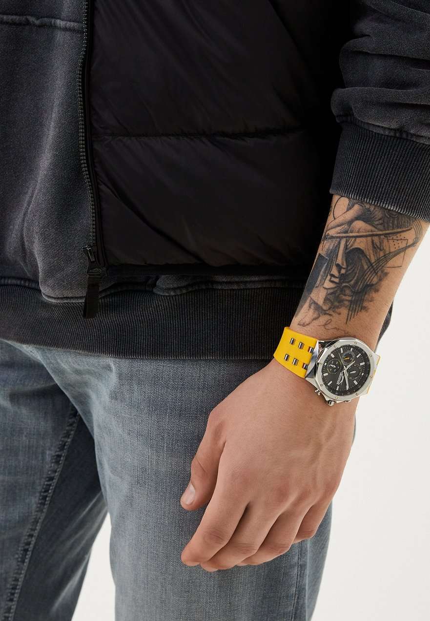 Мужские наручные часы Slazenger SL.09.2218.2.05 — идеальный аксессуар для тех, кто ценит стиль и функциональность. Эти часы, созданные известным британским брендом, отличаются высоким качеством и надежностью. Оснащенные кварцевым механизмом, они гарантируют точность хода и долгий срок службы. Корпус часов выполнен из прочного металла, а черный циферблат защищен минеральным стекломМинеральное стеклоМинеральное стекло представляет собой искусственно выращенный минерал кварца. Такое стекло отличается особой устойчивостью к повреждениям и царапинам. Уступает по некоторым качествам сапфировому стеклу., устойчивым к царапинам и повреждениям. Желтый резиновый ремешок с металлическими вставками и классической застежкой обеспечивает комфортное ношение и надежную фиксацию на запястье. Диаметр корпуса составляет 46 мм, а толщина — 12 мм, что придает часам современный и стильный вид. Благодаря водозащите уровня WR 50, вы можете не беспокоиться о случайных попаданиях влаги, что делает эти часы идеальными для повседневного использования. Стрелки снабжены люминесцентным покрытиемЛюминесцентное покрытиеПозволяет считывать показания времени в темноте. Производители наносят на стрелки, часовые индексы, безель или поверхность циферблата светонакопительный состав, дающий холодное свечение., что позволяет легко считывать время в темноте. Функциональность модели включает в себя отображение даты, дня недели и времени в 24-часовом формате на дополнительных малых циферблатах, что делает часы не только стильными, но и практичными.