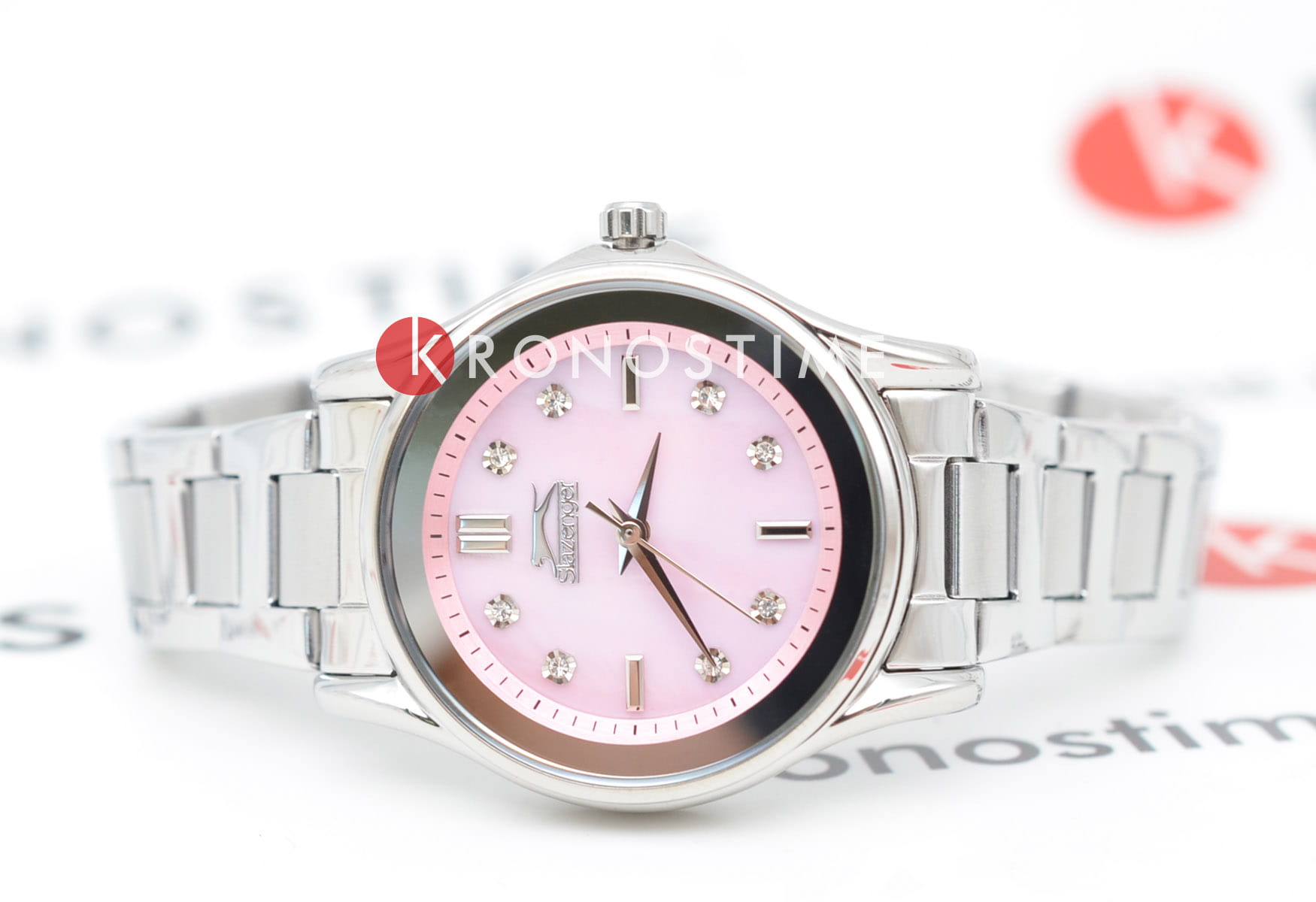 Женские наручные часы Slazenger SL.09.2235.3.08 сочетают в себе классический дизайн и надежность современных технологий. Модель обладает круглым корпусом диаметром 32 мм, изготовленным из прочного металла, что обеспечивает высокую устойчивость к внешним воздействиям. Индексы украшены фианитами. Браслет выполнен из металла с раскладной застёжкойРаскладная застёжкаТакой тип застёжки используется только на браслетах из металла. Она никогда не раскрывается полностью, происходит разделение на 2 и более частей. Раскладывающая застёжка снизит вероятность потери часов к минимуму., гарантирующей комфортное ношение и безопасность. Циферблат перламутрового розового цвета декорирован серебристыми стрелками и индексами. Для защиты используется минеральное стеклоМинеральное стеклоМинеральное стекло представляет собой искусственно выращенный минерал кварца. Такое стекло отличается особой устойчивостью к повреждениям и царапинам. Уступает по некоторым качествам сапфировому стеклу., обеспечивающее прочную защиту от царапин. Часы работают на кварцевом механизме, что гарантирует точное время без необходимости подзаводки. Водонепроницаемость часов достигает 3 атмосфер, что позволяет использовать их при мытье рук или хождении под мелким дождем, однако не рекомендуется для плавания или других водных видов спорта. Вес модели составляет 72 грамма.