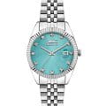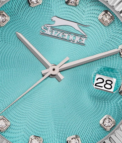 Женские наручные часы Slazenger SL.09.2240.3.06 сочетают в себе классический дизайн и надежность современных технологий. Модель обладает круглым корпусом диаметром 32 мм, изготовленным из суперметалла, что обеспечивает высокую устойчивость к внешним воздействиям. Циферблат голубого цвета декорирован серебристыми стрелками и индексами с фианитами. Браслет выполнен из суперметалла с раскладной застежкойРаскладной замокДанный вариант застежки используется только на часах с металлическим браслетом. Отличительная особенность такого крепления в том, что длина браслета становится универсальной и вы можете самостоятельно отрегулировать нужный вам размер – застежка просто двигается по браслету часов., гарантирующей комфортное ношение и безопасность. Корпус покрыт минеральным стекломМинеральное стеклоМинеральное стекло представляет собой искусственно выращенный минерал кварца. Такое стекло отличается особой устойчивостью к повреждениям и царапинам. Уступает по некоторым качествам сапфировому стеклу., обеспечивающее прочную защиту от царапин. Часы работают на кварцевом механизме, что гарантирует точное время без необходимости подзаводки. Водонепроницаемость часов достигает 3 атмосфер, что позволяет использовать их при мытье рук или хождении под мелким дождем, однако не рекомендуется для плавания или других водных видов спорта. Вес модели составляет 80 граммов.