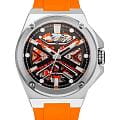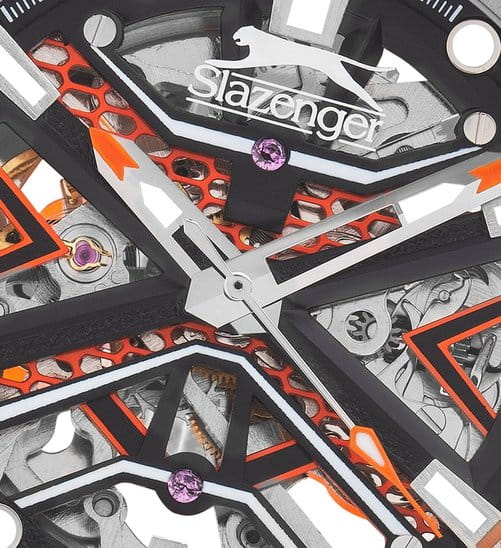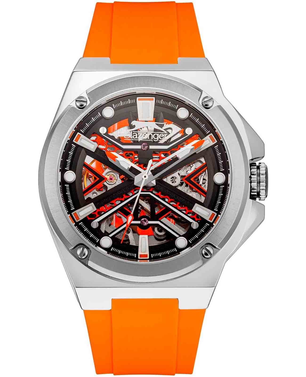 Часы Slazenger SL.09.2265.1.01 представляют собой гармоничное сочетание современного дизайна и надежных технических характеристик, созданное для динамичных и уверенных в себе людей. Модель оснащена механическим механизмом с автоподзаводом, что обеспечивает высокую точность и автономность работы. Круглый корпус диаметром 44 мм и толщиной 14 мм выполнен из прочного суперметалла, а сатинированный безельБезельВнешний ободок, закрепляющий стекло. В спортивных часах так называется поворотное кольцо с делениями на циферблате, выполняет роль таймера – замеряет отрезки времени на шкале. Неподвижный безель – элемент декора. Однонаправленно вращающийся безель на дайверских часах позволяет фиксировать моменты погружения и выныривания на поверхность. с 4 винтами придаёт изделию особую элегантность. Чёрный скелетонизированный циферблат с метками в виде точек и штрихов защищён прочным минеральным стекломМинеральное стеклоМинеральное стекло представляет собой искусственно выращенный минерал кварца. Такое стекло отличается особой устойчивостью к повреждениям и царапинам. Уступает по некоторым качествам сапфировому стеклу., что гарантирует устойчивость к царапинам и механическим воздействиям. Стрелки и метки с люминесцентным покрытиемЛюминесцентное покрытиеПозволяет считывать показания времени в темноте. Производители наносят на стрелки, часовые индексы, безель или поверхность циферблата светонакопительный состав, дающий холодное свечение. обеспечивают отличную читаемость времени даже в темноте, светясь после непродолжительного воздействия света. Заводная головка оснащена защитой для дополнительного удобства использования. Прозрачное окошко на задней крышке позволяет наблюдать за работой механизма, добавляя модели технического шарма. Удобный оранжевый силиконовый ремешок шириной 26 мм с классической застёжкой обеспечивает комфортную посадку на запястье. Водозащита 50WR позволяет не беспокоиться о попадании влаги при повседневном использовании. Вес часов составляет 116 грамм, что делает их надёжным и стильным аксессуаром для любого случая.