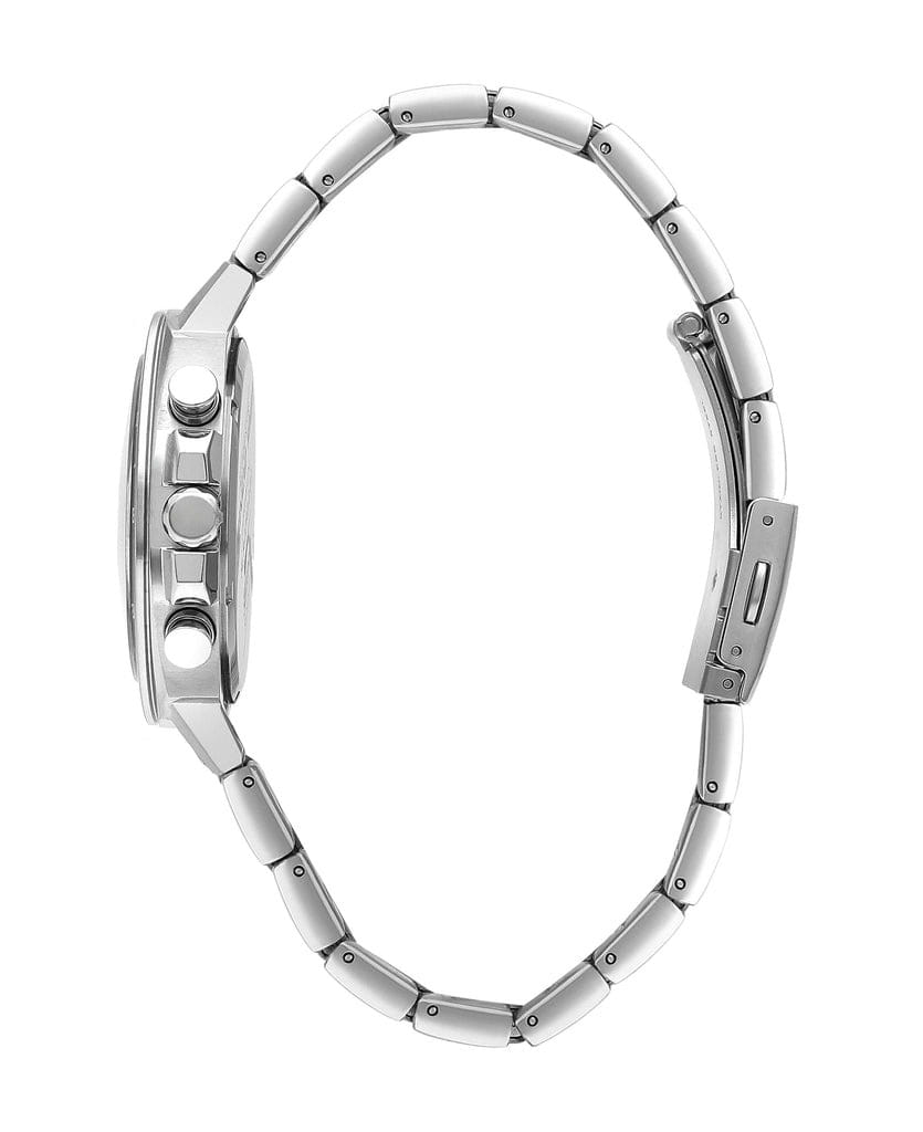 Slazenger SL.09.2292.2.01 — это стильные наручные часы, выполненные в современном дизайне и отлично подходящие для повседневного использования. Корпус диаметром 45 мм изготовлен из прочного металла и дополнен минеральным стекломМинеральное стеклоМинеральное стекло представляет собой искусственно выращенный минерал кварца. Такое стекло отличается особой устойчивостью к повреждениям и царапинам. Уступает по некоторым качествам сапфировому стеклу., которое защищает сине-черный циферблат. Серебристый металлический браслет шириной 24 мм оснащён надежной раскладной застёжкойРаскладная застёжкаТакой тип застёжки используется только на браслетах из металла. Она никогда не раскрывается полностью, происходит разделение на 2 и более частей. Раскладывающая застёжка снизит вероятность потери часов к минимуму., которая обеспечивает комфортную посадку на руке. Кварцевый механизм гарантирует точный ход, а водозащита уровня WR 50 позволяет не снимать часы во время мытья рук или под дождём. Модель оснащена люминесцентным покрытиемЛюминесцентное покрытиеПозволяет считывать показания времени в темноте. Производители наносят на стрелки, часовые индексы, безель или поверхность циферблата светонакопительный состав, дающий холодное свечение. стрелок и меток, что облегчает считывание времени в темноте. Дополнительные малые циферблаты отображают дату, день недели и текущее время в 24-часовом формате. Часы также оснащены заводной головкой с защитой и безелемБезельВнешний ободок, закрепляющий стекло. В спортивных часах так называется поворотное кольцо с делениями на циферблате, выполняет роль таймера – замеряет отрезки времени на шкале. Неподвижный безель – элемент декора. Однонаправленно вращающийся безель на дайверских часах позволяет фиксировать моменты погружения и выныривания на поверхность. с черным IP-покрытиемIP-покрытиеМетод ионного напыления. Демонстрирует повышенную устойчивость к истиранию, окислению и химическим веществам. Под воздействием высокого давления и температуры около 1500°C молекулы металла надёжно соединяются с частицами корпуса часов. и секундной разметкой. Вес изделия составляет 173 грамма.
