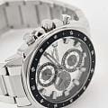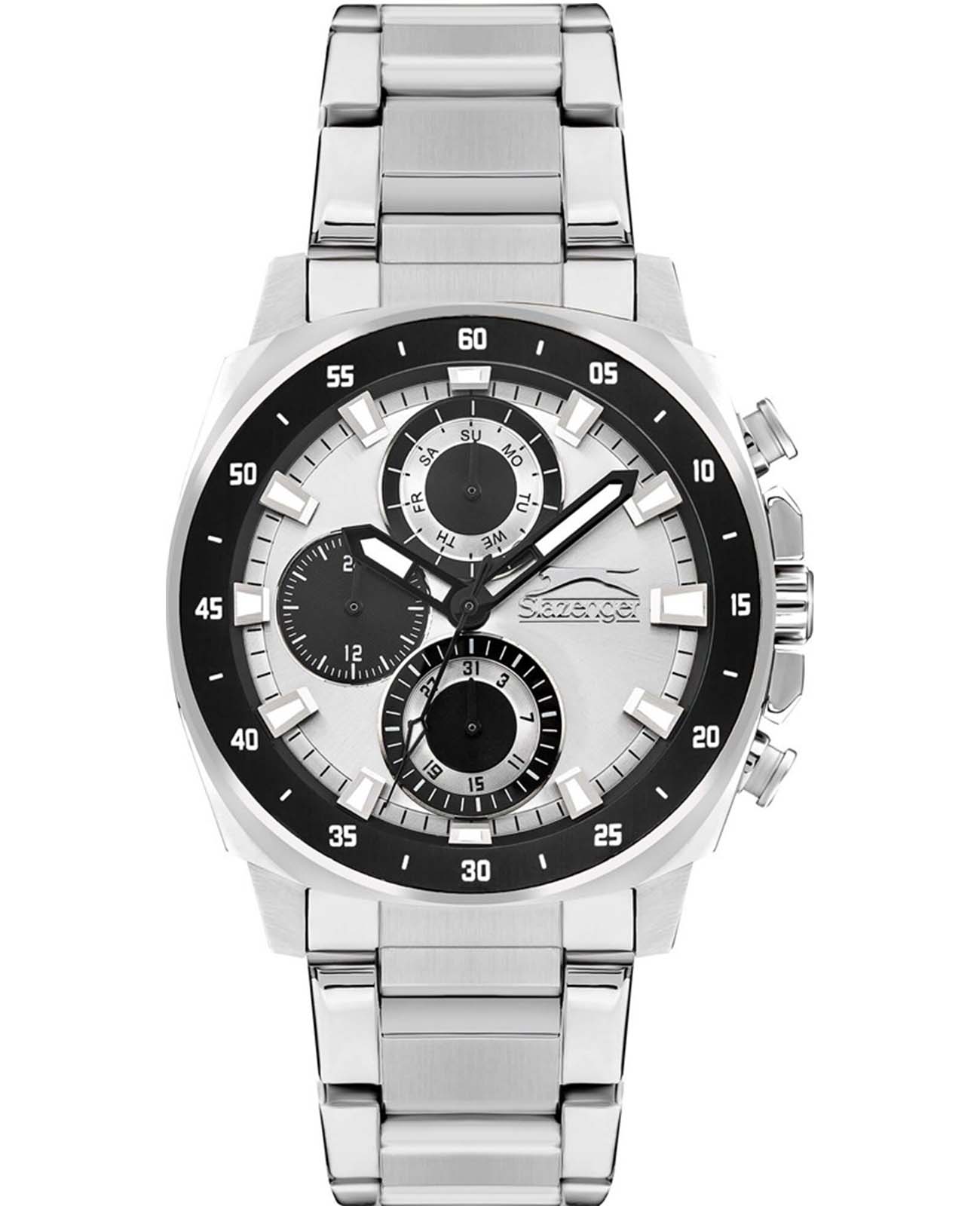 Slazenger SL.09.2292.2.05 — это стильные наручные часы, выполненные в современном дизайне и отлично подходящие для повседневного использования. Корпус диаметром 45 мм изготовлен из прочного металла и дополнен минеральным стекломМинеральное стеклоМинеральное стекло представляет собой искусственно выращенный минерал кварца. Такое стекло отличается особой устойчивостью к повреждениям и царапинам. Уступает по некоторым качествам сапфировому стеклу., которое защищает серебристый циферблат. Серебристый металлический браслет шириной 24 мм оснащён надежной раскладной застёжкойРаскладная застёжкаТакой тип застёжки используется только на браслетах из металла. Она никогда не раскрывается полностью, происходит разделение на 2 и более частей. Раскладывающая застёжка снизит вероятность потери часов к минимуму., которая обеспечивает комфортную посадку на руке. Кварцевый механизм гарантирует точный ход, а водозащита уровня WR 50 позволяет не снимать часы во время мытья рук или под дождём. Модель оснащена люминесцентным покрытиемЛюминесцентное покрытиеПозволяет считывать показания времени в темноте. Производители наносят на стрелки, часовые индексы, безель или поверхность циферблата светонакопительный состав, дающий холодное свечение. стрелок и меток, что облегчает считывание времени в темноте. Дополнительные малые циферблаты отображают дату, день недели и текущее время в 24-часовом формате. Часы также оснащены заводной головкой с защитой и безелемБезельВнешний ободок, закрепляющий стекло. В спортивных часах так называется поворотное кольцо с делениями на циферблате, выполняет роль таймера – замеряет отрезки времени на шкале. Неподвижный безель – элемент декора. Однонаправленно вращающийся безель на дайверских часах позволяет фиксировать моменты погружения и выныривания на поверхность. с черным IP-покрытиемIP-покрытиеМетод ионного напыления. Демонстрирует повышенную устойчивость к истиранию, окислению и химическим веществам. Под воздействием высокого давления и температуры около 1500°C молекулы металла надёжно соединяются с частицами корпуса часов. и секундной разметкой. Вес изделия составляет 173 грамма.