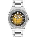 Женские кварцевые часы Slazenger SL.09.2306.3.03 — это элегантный и стильный аксессуар, идеально дополняющий любой образ. Корпус и браслет выполнены из суперметалла, защищён минеральным стекломМинеральное стеклоМинеральное стекло представляет собой искусственно выращенный минерал кварца. Такое стекло отличается особой устойчивостью к повреждениям и царапинам. Уступает по некоторым качествам сапфировому стеклу.. Циферблат жёлтого цвета оформлен в классическом стиле, стрелки оснащены люминесцентным покрытиемЛюминесцентное покрытиеПозволяет считывать показания времени в темноте. Производители наносят на стрелки, часовые индексы, безель или поверхность циферблата светонакопительный состав, дающий холодное свечение., обеспечивающим хорошую читаемость в темноте. Заводная головка снабжена защитой для повышения надёжности. Браслет из суперметалла фиксируется на раскладной застёжкеРаскладная застёжкаТакой тип застёжки используется только на браслетах из металла. Она никогда не раскрывается полностью, происходит разделение на 2 и более частей. Раскладывающая застёжка снизит вероятность потери часов к минимуму., обеспечивая удобство и безопасность ношения. Водонепроницаемость 30 м позволяет использовать часы в повседневных условиях, защищая от случайных брызг и капель дождя. Модель сочетает в себе лёгкость, прочность и изысканный внешний вид.