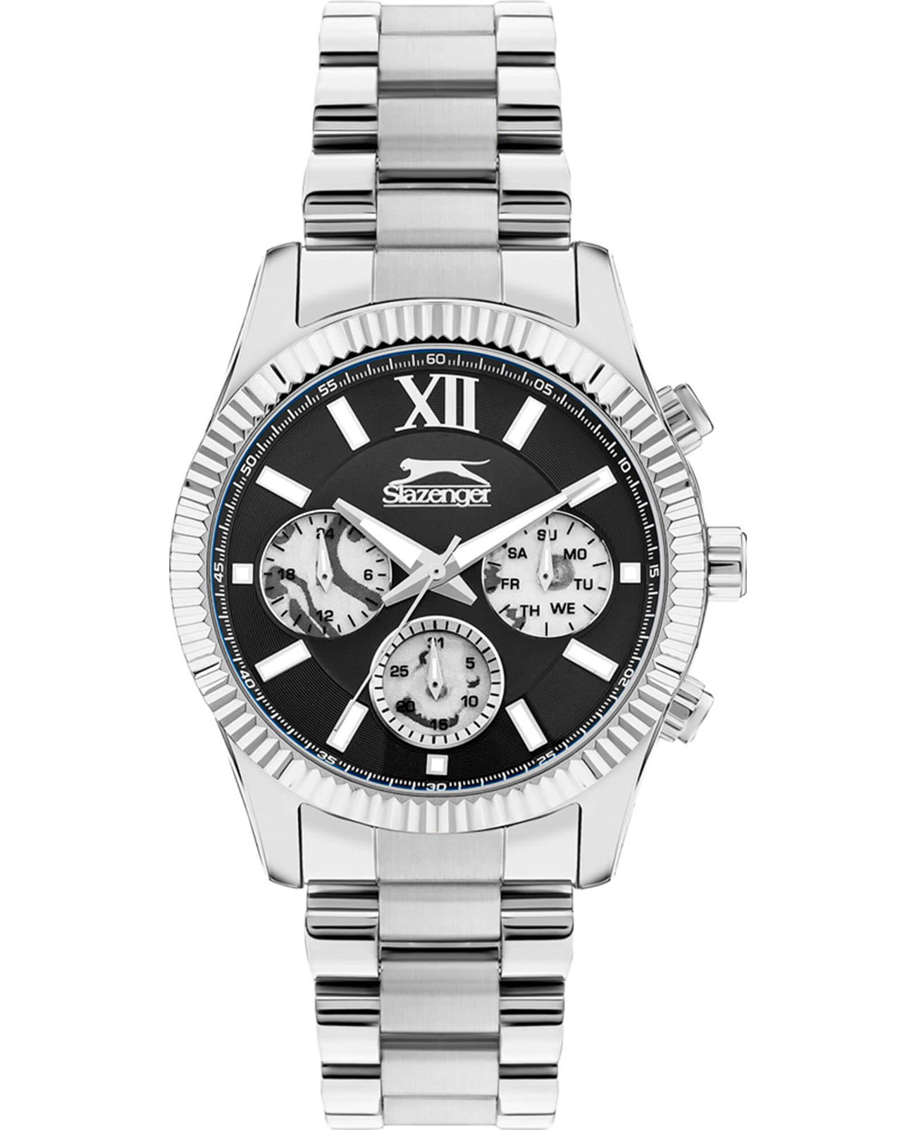 Мужские кварцевые часы Slazenger SL.09.2316.2.02 - это выразительный и функциональный аксессуар, сочетающий прочность, стиль и насыщенную комплектацию. Корпус и браслет выполнены из суперметалла. Циферблат чёрного цвета защищён минеральным стекломМинеральное стеклоМинеральное стекло представляет собой искусственно выращенный минерал кварца. Такое стекло отличается особой устойчивостью к повреждениям и царапинам. Уступает по некоторым качествам сапфировому стеклу. и оформлен с вынесенными малыми циферблатами для индикации дня недели, даты и времени в 24-часовом формате. Стрелки и метки оснащены люминесцентным покрытиемЛюминесцентное покрытиеПозволяет считывать показания времени в темноте. Производители наносят на стрелки, часовые индексы, безель или поверхность циферблата светонакопительный состав, дающий холодное свечение., обеспечивающим хорошую читаемость в темноте. Завинчивающаяся задняя крышка повышает надёжность конструкции. Браслет из суперметалла фиксируется на раскладной застёжкеРаскладная застёжкаТакой тип застёжки используется только на браслетах из металла. Она никогда не раскрывается полностью, происходит разделение на 2 и более частей. Раскладывающая застёжка снизит вероятность потери часов к минимуму., обеспечивая удобство и безопасность ношения. Водонепроницаемость 50 м позволяет использовать часы в повседневных условиях, защищая от случайных брызг и капель дождя. Модель подчёркивает индивидуальность владельца и идеально подходит как для повседневного, так и для делового образа.