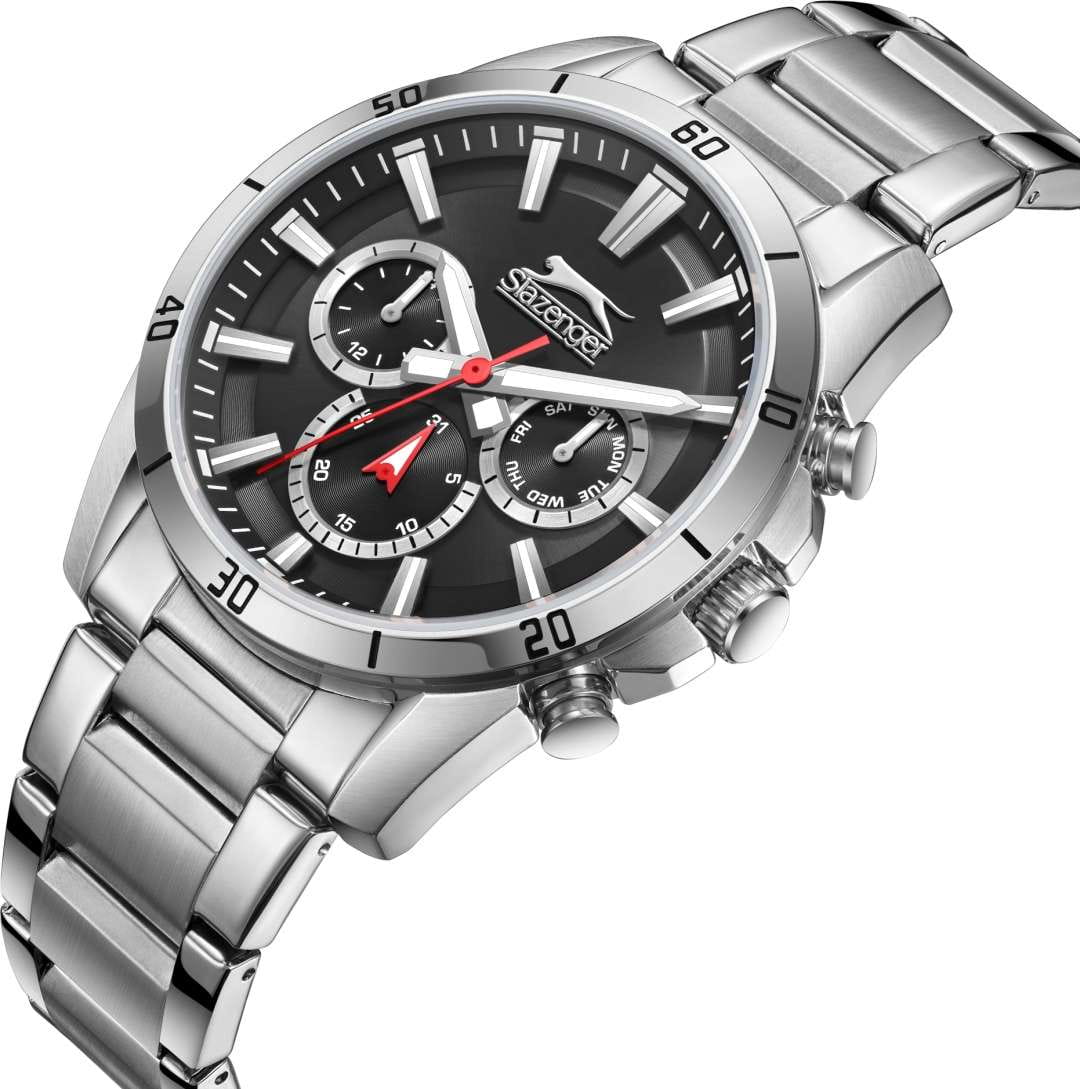 Мужские кварцевые часы Slazenger SL.09.2332.2.02 — это выразительный и функциональный аксессуар, сочетающий стиль, прочность и насыщенную комплектацию. Корпус и браслет выполнены из суперметалла. Изысканный циферблат защищён минеральным стекломМинеральное стеклоМинеральное стекло представляет собой искусственно выращенный минерал кварца. Такое стекло отличается особой устойчивостью к повреждениям и царапинам. Уступает по некоторым качествам сапфировому стеклу. и дополнен вынесенными малыми циферблатами для индикации дня недели, даты и времени в 24-часовом формате. Стрелки и метки оснащены люминесцентным покрытиемЛюминесцентное покрытиеПозволяет считывать показания времени в темноте. Производители наносят на стрелки, часовые индексы, безель или поверхность циферблата светонакопительный состав, дающий холодное свечение., обеспечивающим хорошую читаемость в темноте. Браслет из суперметалла фиксируется на раскладной застёжкеРаскладная застёжкаТакой тип застёжки используется только на браслетах из металла. Она никогда не раскрывается полностью, происходит разделение на 2 и более частей. Раскладывающая застёжка снизит вероятность потери часов к минимуму., обеспечивая удобство и безопасность ношения. Водонепроницаемость 50 м позволяет использовать часы в повседневных условиях, защищая от случайных брызг и капель дождя. Модель подчёркивает индивидуальность владельца и идеально подходит как для повседневного, так и для делового образа.