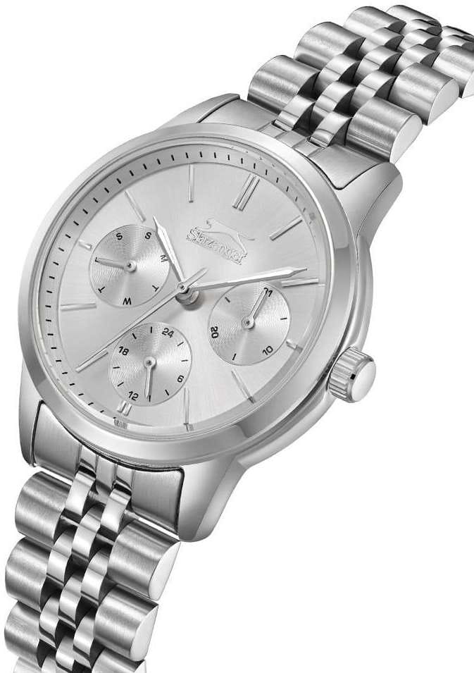 Женские элегантные наручные часы Slazenger SL.09.2336.4.01 сочетают в себе современный стиль и функциональность. Корпус выполнен из суперметалла, придающий модели дополнительную прочность и элегантный внешний вид. Изысканный циферблат защищён минеральным стекломМинеральное стеклоМинеральное стекло представляет собой искусственно выращенный минерал кварца. Такое стекло отличается особой устойчивостью к повреждениям и царапинам. Уступает по некоторым качествам сапфировому стеклу., устойчивым к царапинам и повреждениям. Водонепроницаемость 3 АТМ позволяет использовать часы в повседневных условиях — при мытье рук или под лёгким дождём. Часы оснащены дополнительными циферблатами, отображающими дату, день недели и 24-часовой формат времени, что добавляет практичности в повседневном использовании. Браслет из суперметалла и с раскладной застёжкойРаскладная застёжкаТакой тип застёжки используется только на браслетах из металла. Она никогда не раскрывается полностью, происходит разделение на 2 и более частей. Раскладывающая застёжка снизит вероятность потери часов к минимуму. обеспечивает надёжную фиксацию и комфорт при ношении. Эта модель идеально подходит для женщин, ценящих стиль, функциональность и надёжность в одном аксессуаре.