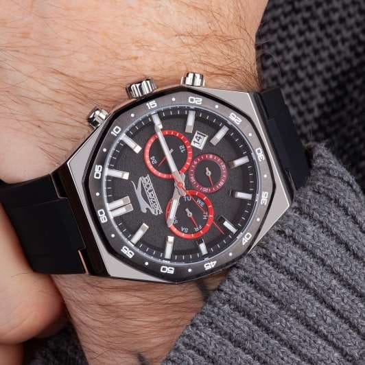 Мужские элегантные наручные часы Slazenger SL.09.2341.2.01 сочетают в себе современный стиль и функциональность. Стильный корпус выполнен из нержавеющей стали с неповоротный безелемБезельВнешний ободок, закрепляющий стекло. В спортивных часах так называется поворотное кольцо с делениями на циферблате, выполняет роль таймера – замеряет отрезки времени на шкале. Неподвижный безель – элемент декора. Однонаправленно вращающийся безель на дайверских часах позволяет фиксировать моменты погружения и выныривания на поверхность. с IP-покрытиемIP-покрытиеМетод ионного напыления. Демонстрирует повышенную устойчивость к истиранию, окислению и химическим веществам. Под воздействием высокого давления и температуры около 1500°C молекулы металла надёжно соединяются с частицами корпуса часов., придающий модели дополнительную прочность и элегантный внешний вид. Изысканный циферблат защищён минеральным стекломМинеральное стеклоМинеральное стекло представляет собой искусственно выращенный минерал кварца. Такое стекло отличается особой устойчивостью к повреждениям и царапинам. Уступает по некоторым качествам сапфировому стеклу., устойчивым к царапинам и повреждениям, и дополнен вынесенными малыми циферблатами для индикации дня недели и времени в 24-часовом формате. Водонепроницаемость 5 АТМ позволяет использовать часы в повседневных условиях — при мытье рук или под лёгким дождём. Ремень из силикона со стандартной застежкой, обеспечивающий надёжную фиксацию и комфорт при ношении. Окошко даты находится в положении между 4 и 5 часами. Cтрелки и метки покрыты люминесцентным покрытиемЛюминесцентное покрытиеПозволяет считывать показания времени в темноте. Производители наносят на стрелки, часовые индексы, безель или поверхность циферблата светонакопительный состав, дающий холодное свечение. для читаемости в условиях недостаточного освещения. Эта модель идеально подходит для мужчин, ценящих стиль, функциональность и надёжность в одном аксессуаре.